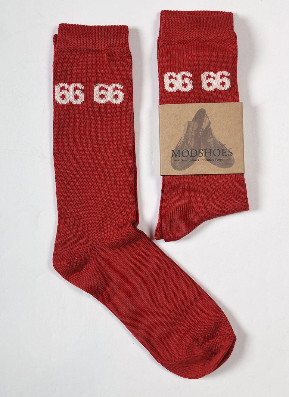 We have sold Red socks here at Mod Shoes more less since we became an online shop. We wanted the colour to be more muted than bright red, and the colour has come out really nice. So the people that made our Peckahm Gingham and Terry Towelling ones have also now made these, and of course we took the advantage of being able to get our branding on to the socks