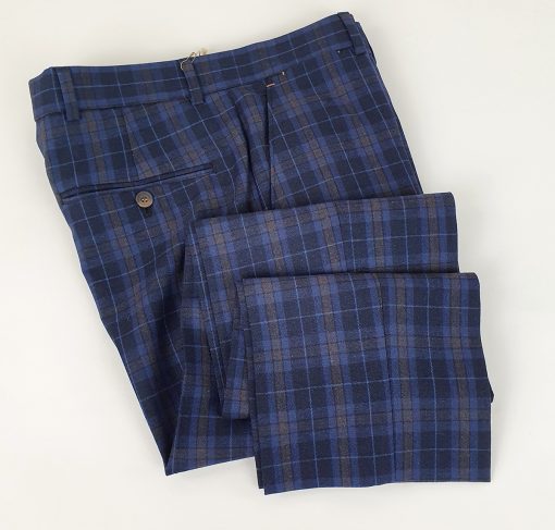 This pair of men’s Blue Tartan trousers represents the best of true character style for the man seeking an eye-catching, colourful statement, with vibrant checked fabric.