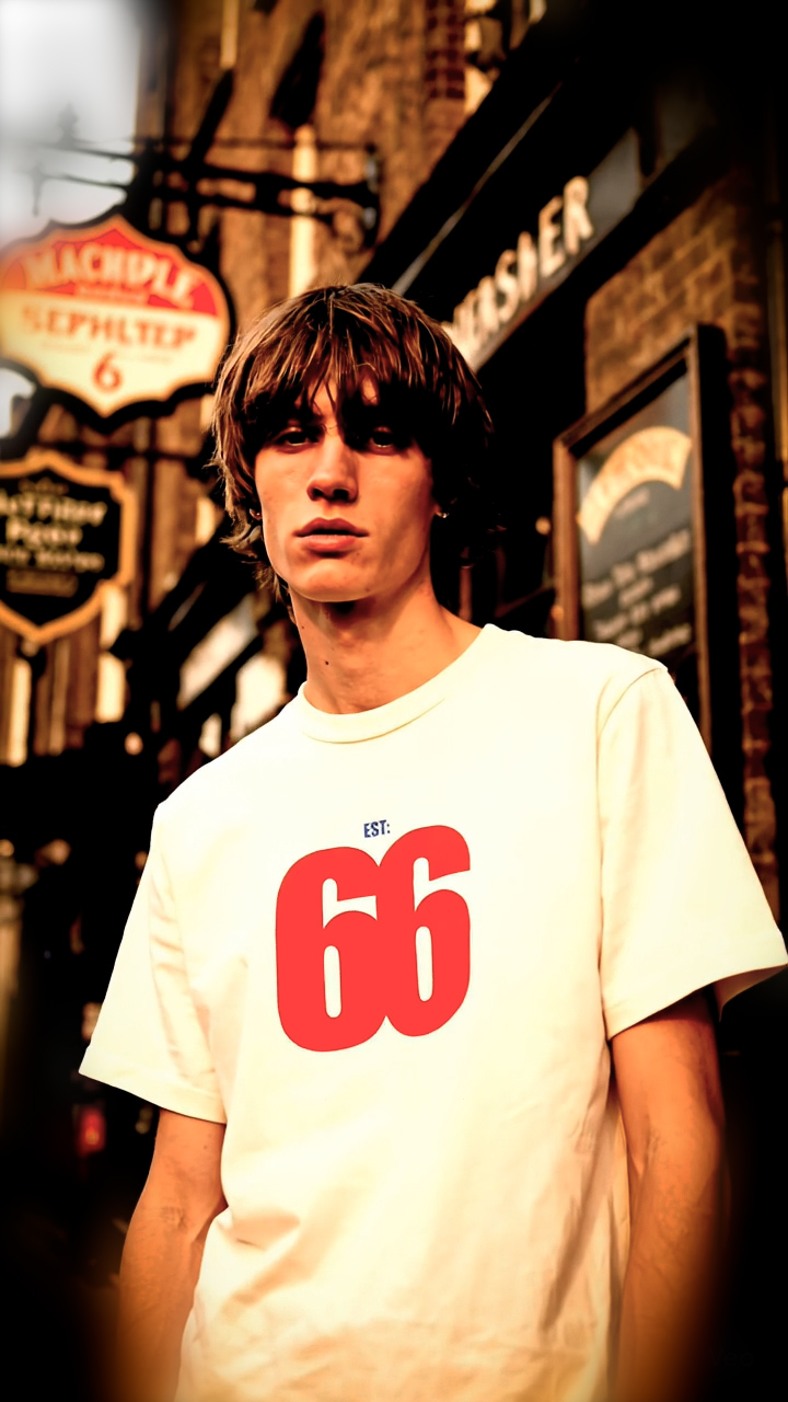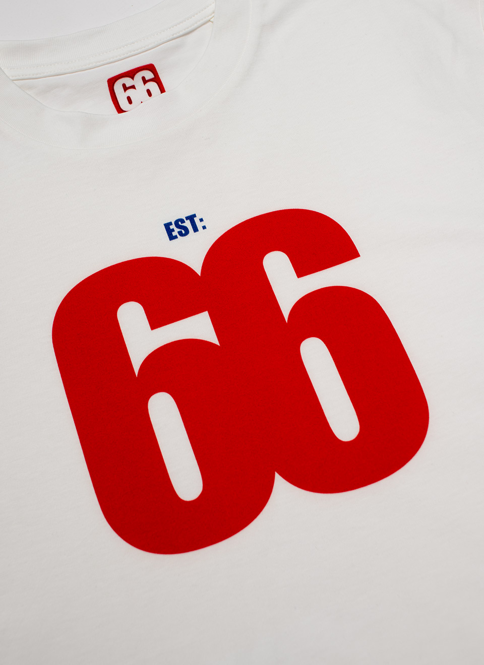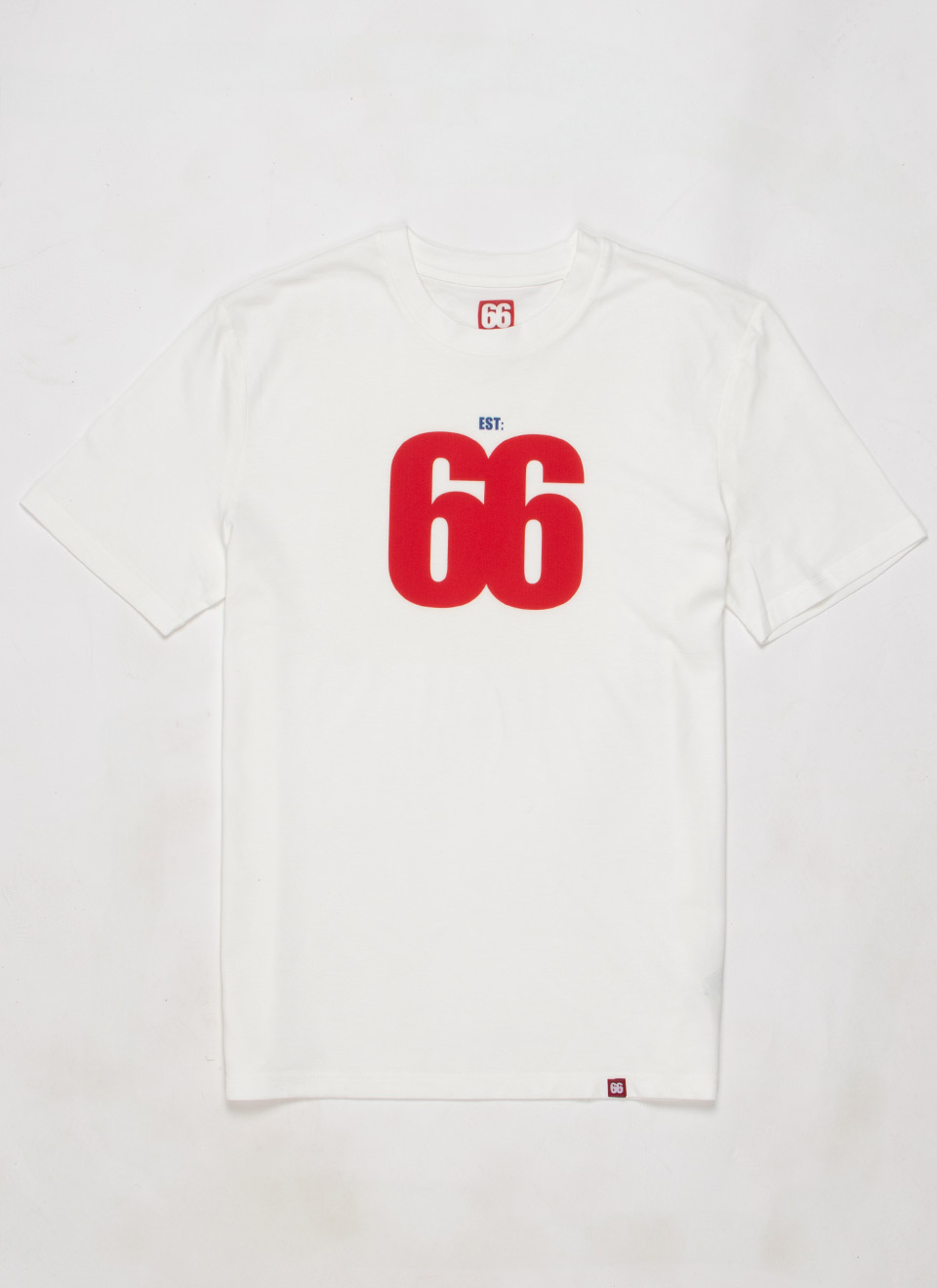 Est 66 Red Logo – Vintage White T-shirt – AceTee by 66 Clothing