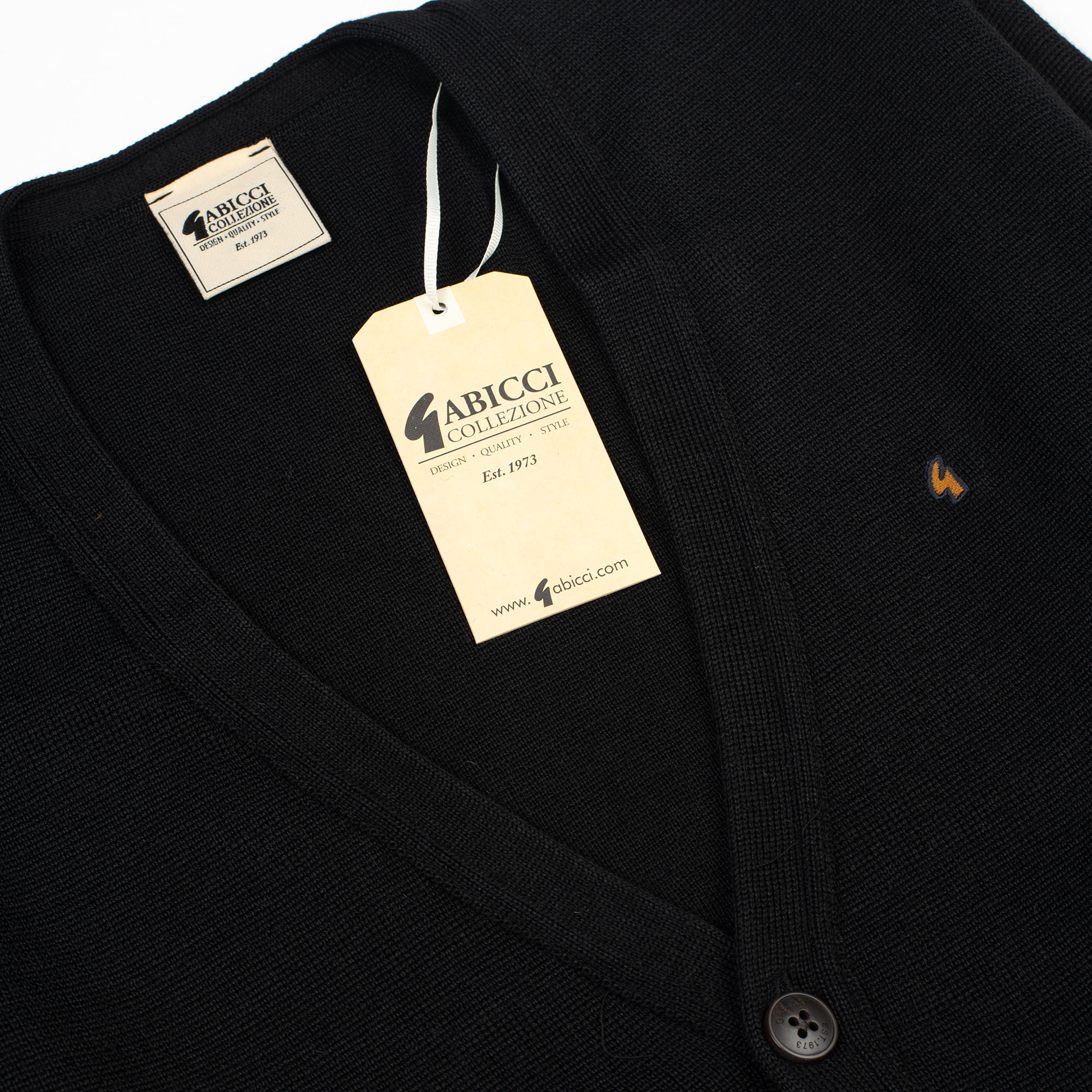 The cardigan features a classic V-neck design with a button-down front and two front pockets, making it both stylish and functional. The Gabicci logo is elegantly embroidered on the chest, adding a signature touch. This cardigan can be worn over a dress shirt for a sophisticated look, layered with a tie for a polished appearance, or styled casually over a T-shirt for a relaxed yet refined outfit. It pairs perfectly with chinos or jeans, making it a versatile wardrobe staple.