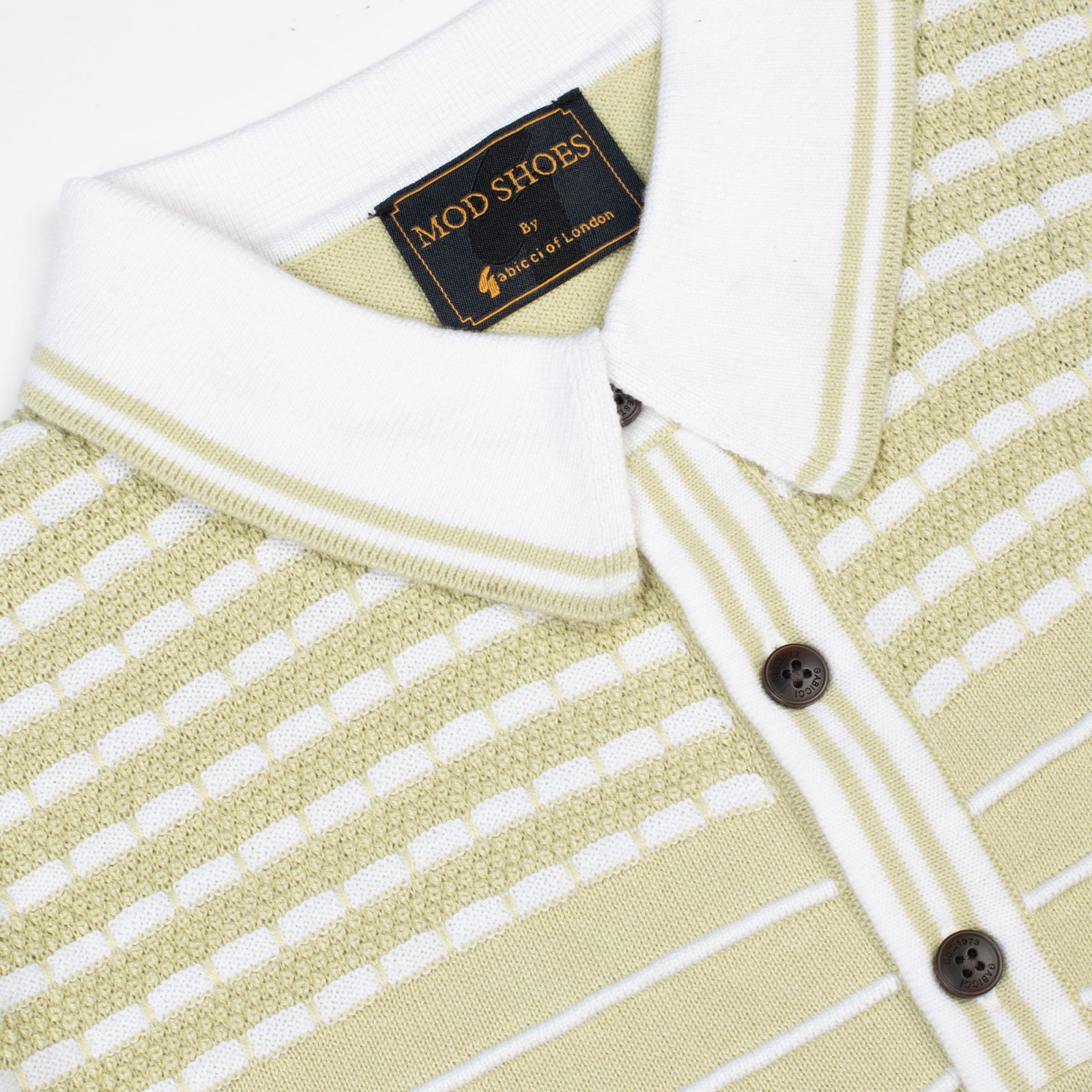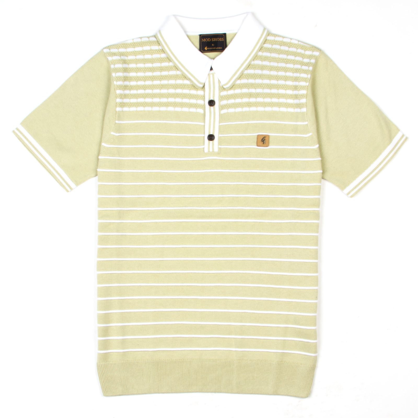 The styling is pure retro-sports luxe, with a knitted texture that feels just as good as it looks. The contrast white collar and striped detailing give it a sharp, vintage-inspired edge, while the three-button placket and subtle Gabicci badge add that unmistakable touch of class. Whether you’re going for a smart-casual look or leaning into full-on mod styling, this top has you covered.