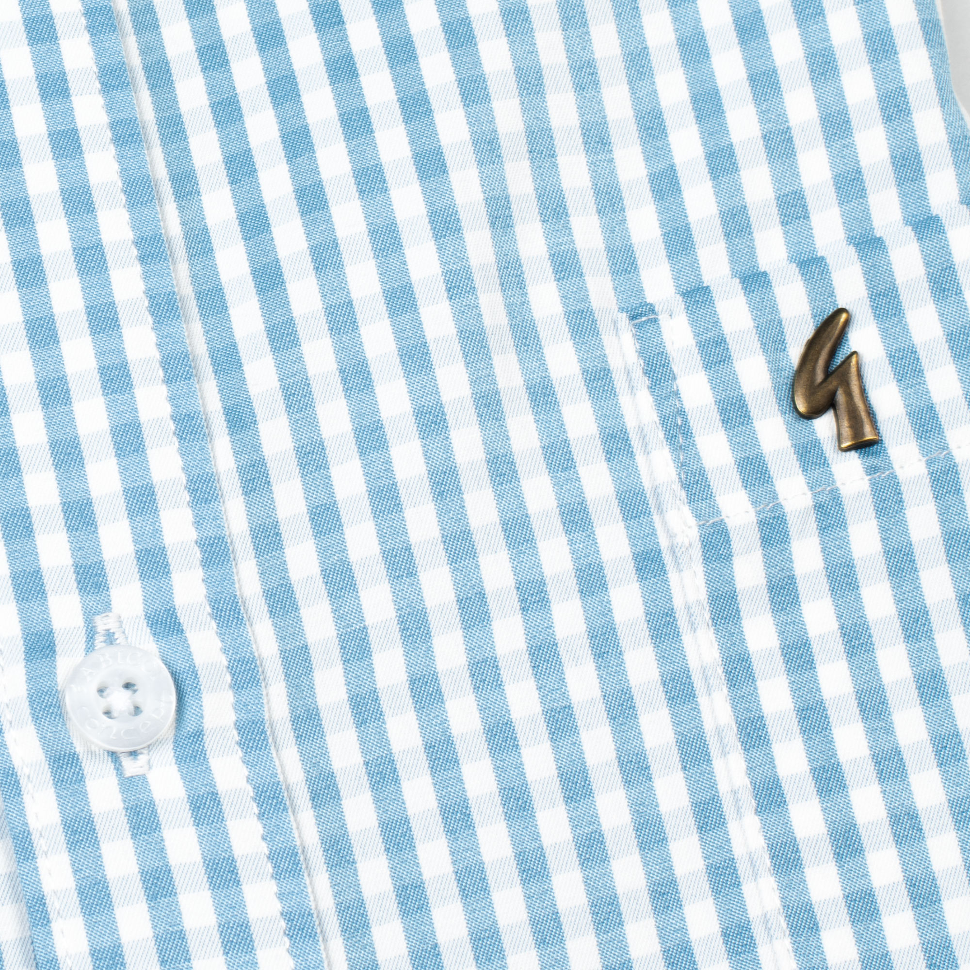 Keep your summer style crisp and clean with the Gabicci Vintage Fraser Shirt in this fresh aqua blue check. A modern take on a classic warm-weather essential, this short sleeve button-down shirt features a light gingham pattern, neat collar, and subtle branding with the Gabicci “G” logo tab at the chest pocket.