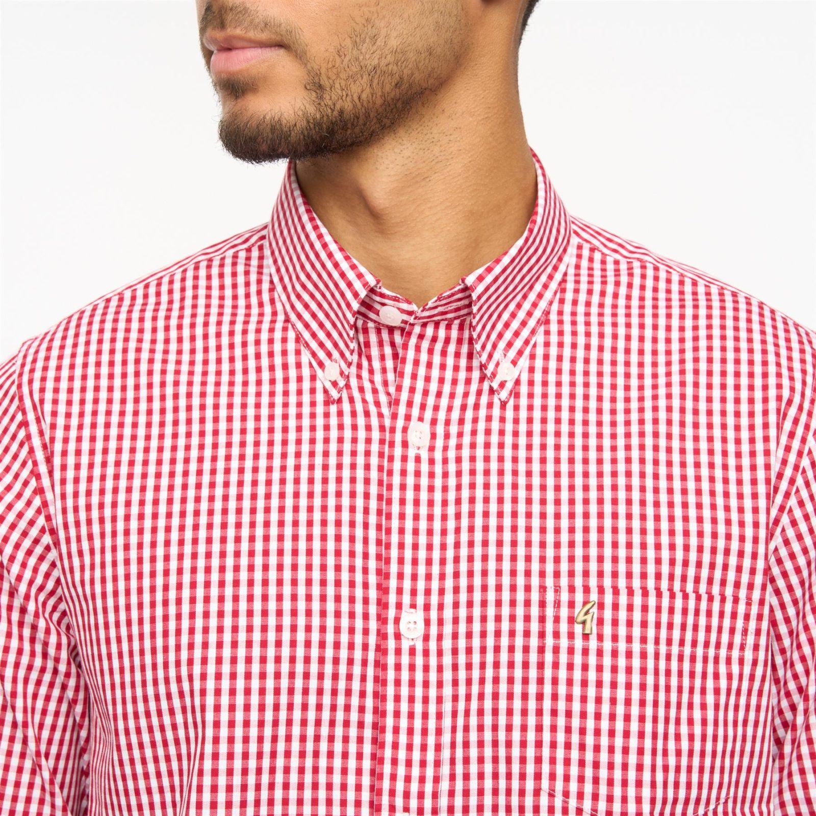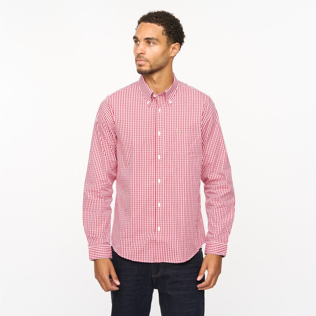 Gabicci Classic Men’s Long Sleeve Gingham Check Shirt – Cherry