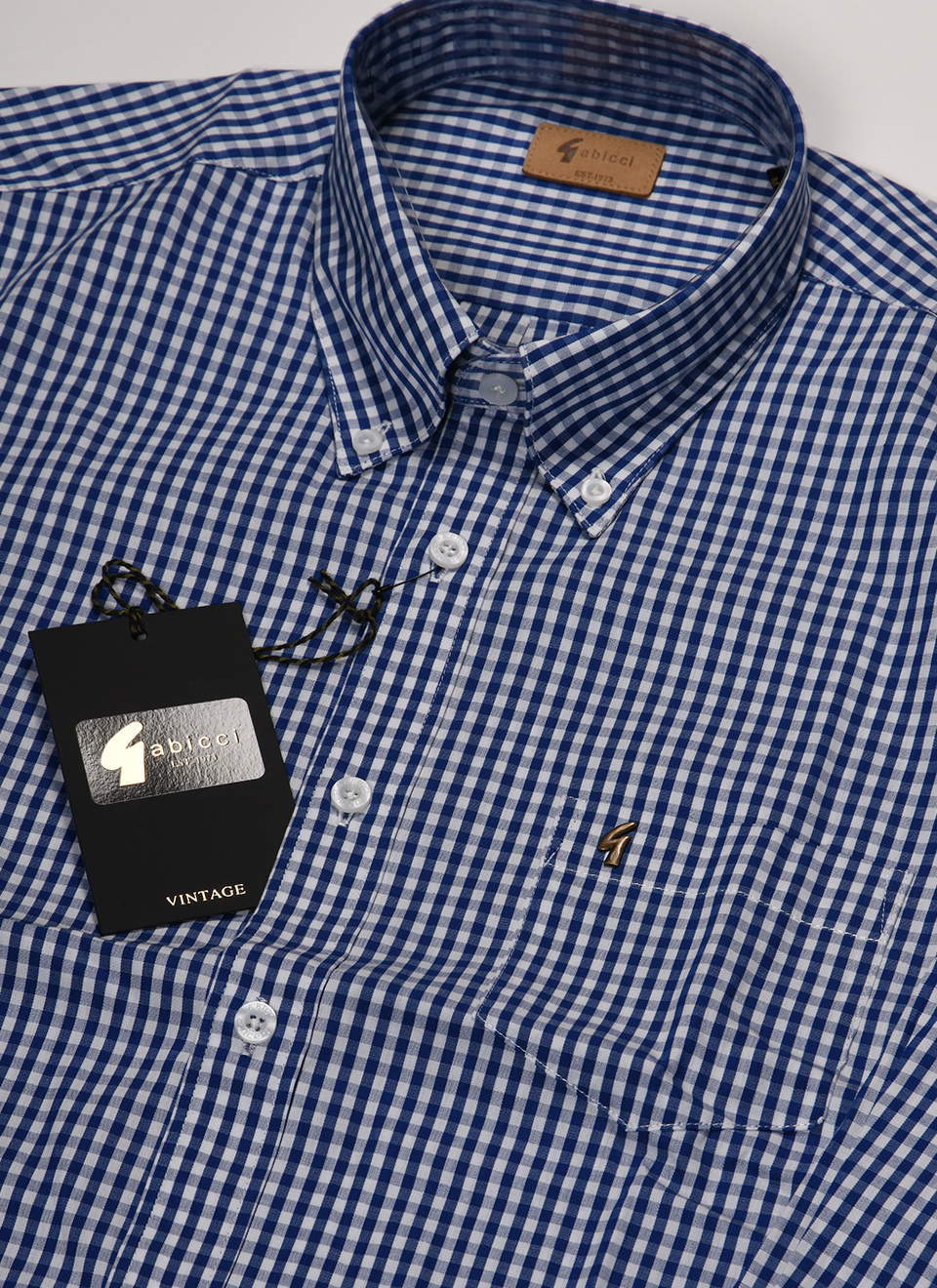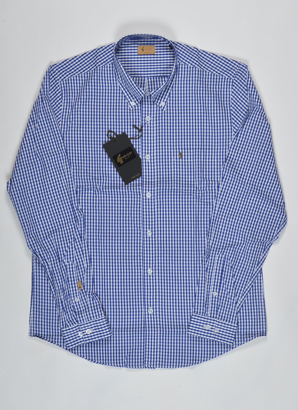 Gabicci Classic Men’s Long Sleeve Gingham Check Shirt – Blue