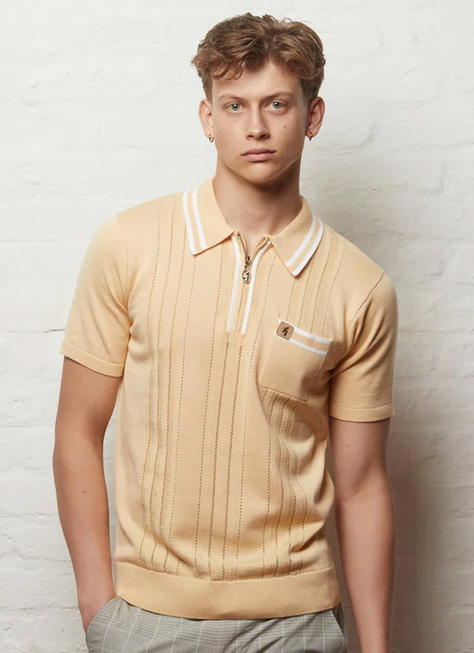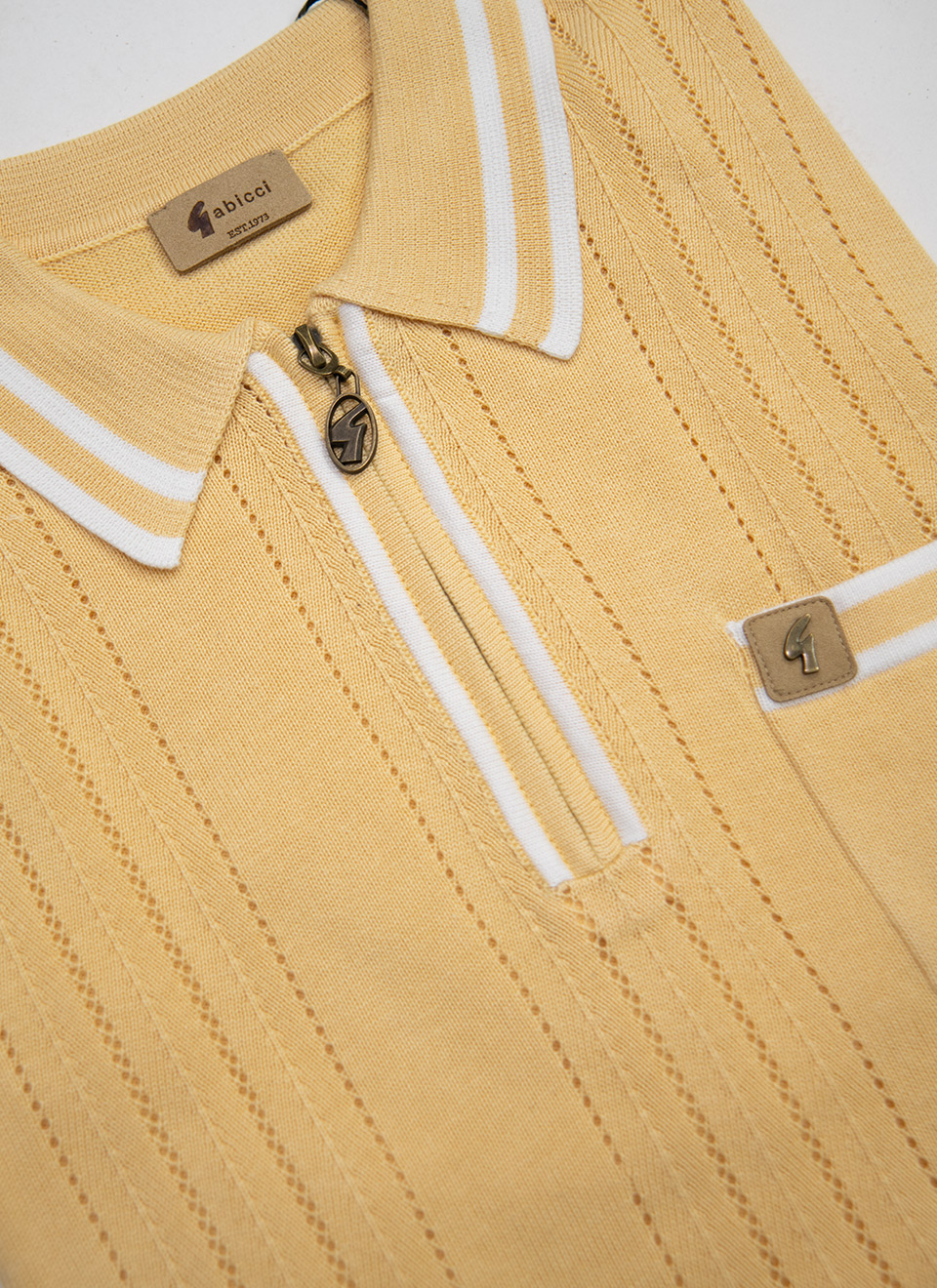 A sharp, retro-inspired knit polo that blends classic styling with modern detailing. The Johnson Polo features a sleek zip neck design, subtle vertical knit detailing, and contrast tipping for a refined vintage aesthetic.