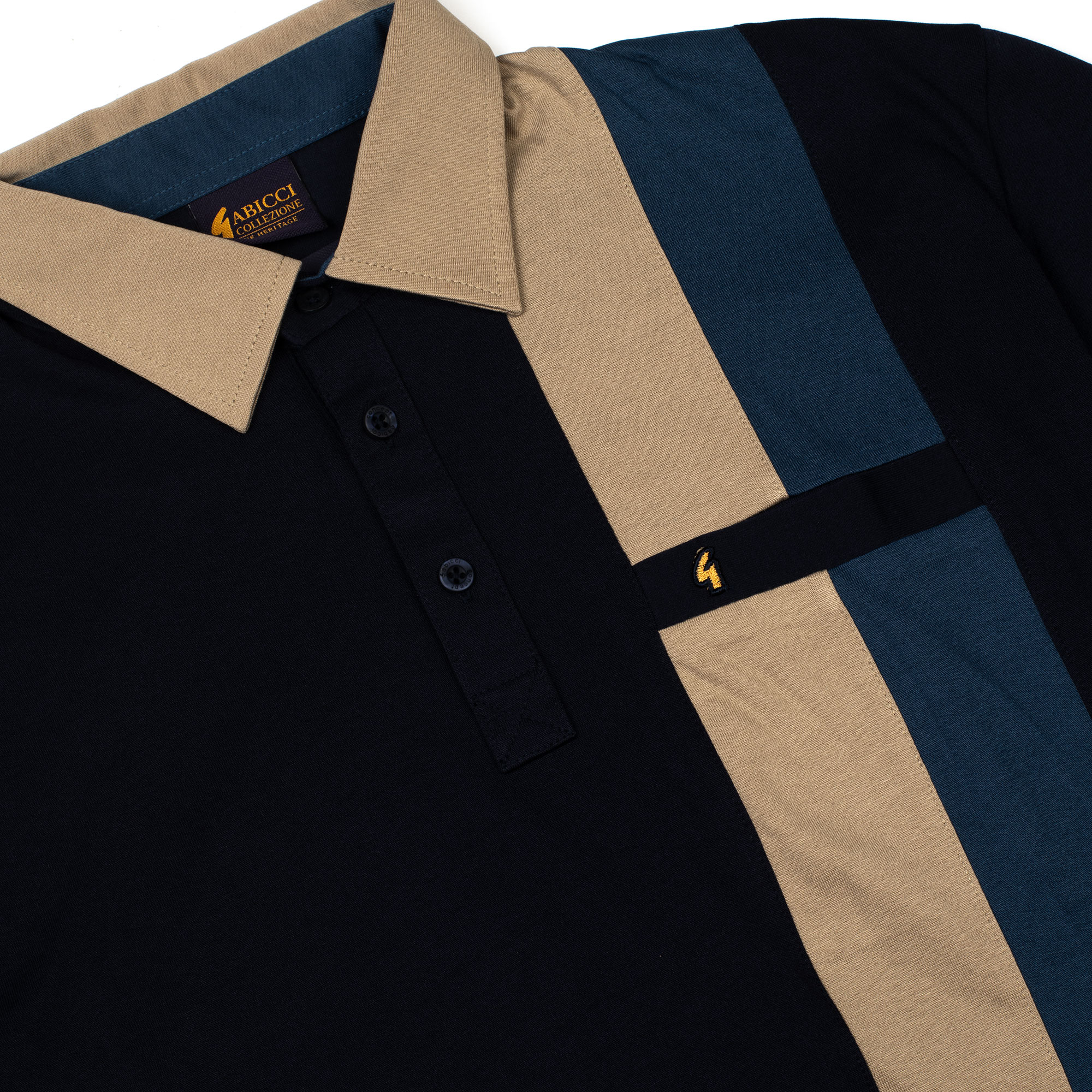 In deep black with bold vertical panels of granola beige and muted petrol blue, this polo cuts a sharp silhouette. The smart contrast collar and three-button placket nod to tailored sportswear, while the chest pocket, embroidered with the signature “4,” adds a finishing touch of subtle swagger.