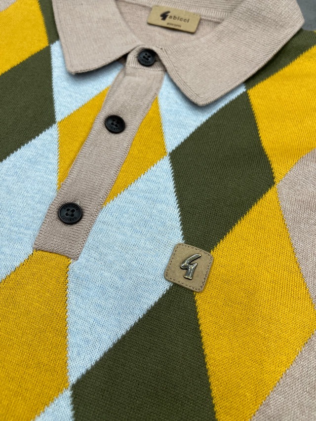 Elevate your style with the Gabicci Vintage Men’s Pablo Knit Polo in Granola. This striking polo shirt combines classic elegance with a bold, modern twist, making it a standout piece for any wardrobe.
