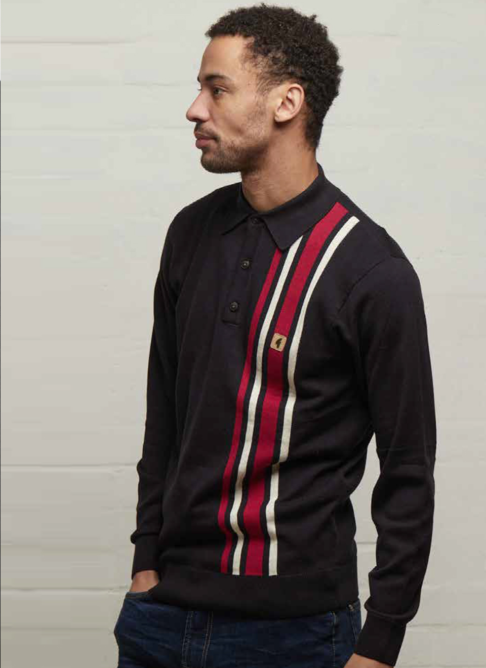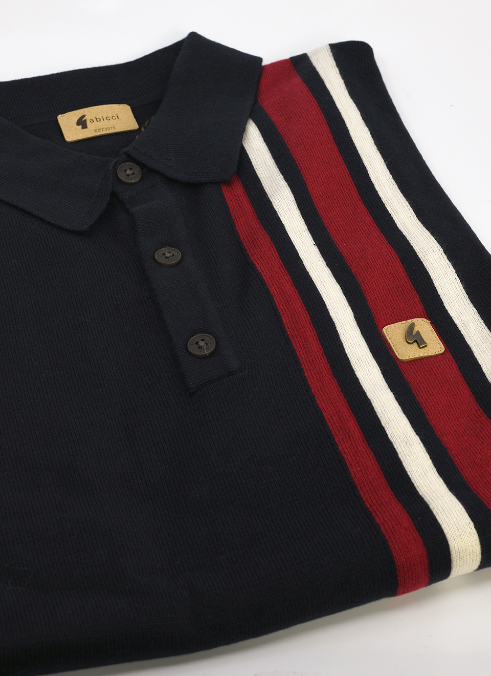 Crafted from a cotton blend knitted fabric and with a mod smart three button placket, the Soda features striking retro racing stripe detail to the left front panel, giving it a fab sixties inspired twist. With retro ribbed trims and a classic spread collar with concealed top button fastening, the Soda knitted polo is a great way to elevate a casual look. The stylish Soda is completed with the iconic Gabicci badge to the left chest.
