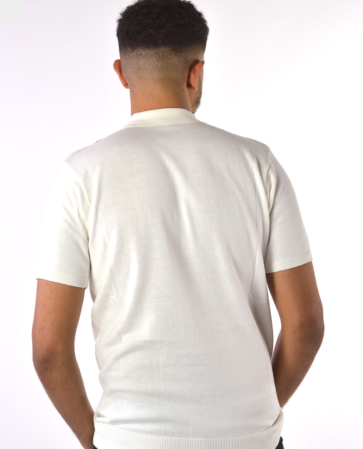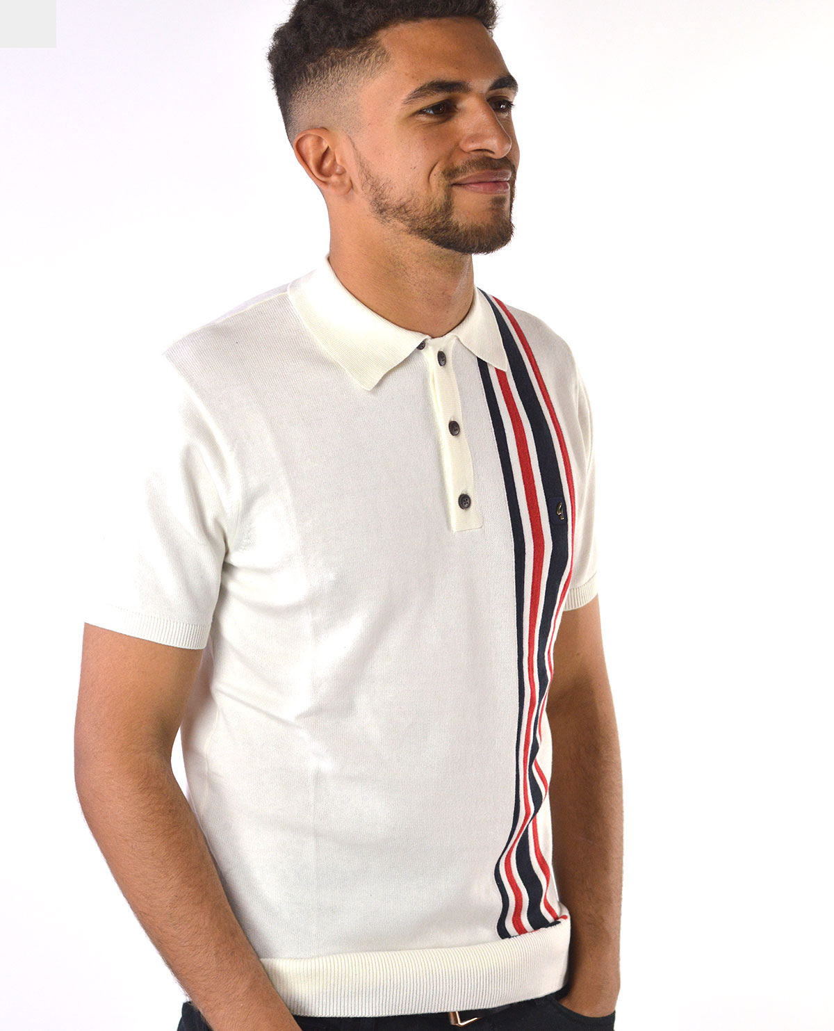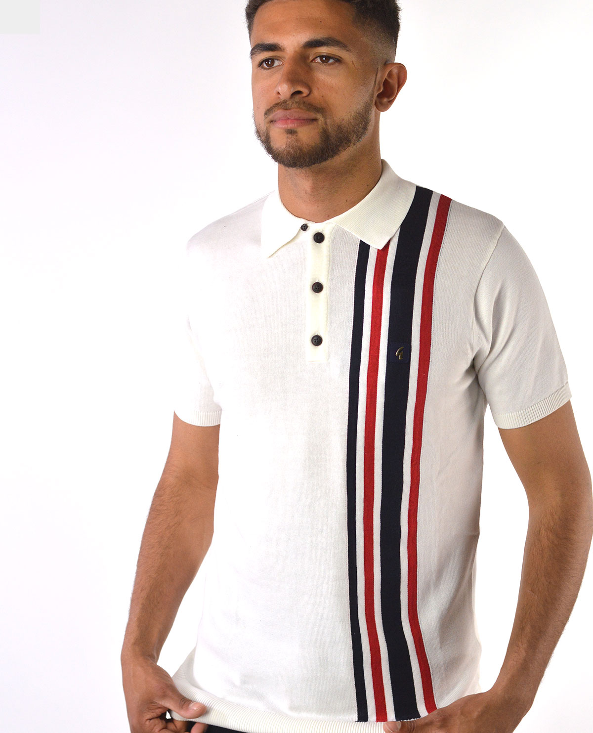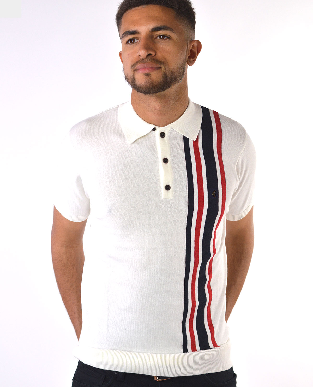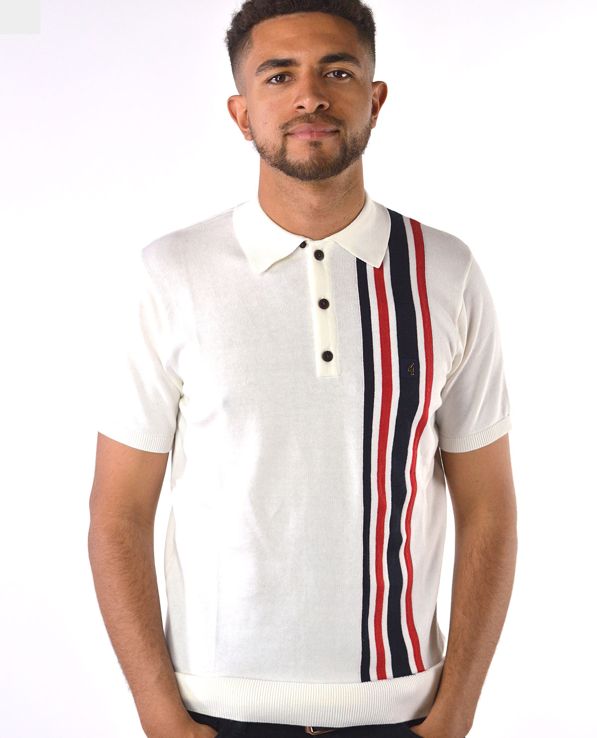 Gabicci Soda White – Mod Stripe – Short Sleeve Knitted Polo