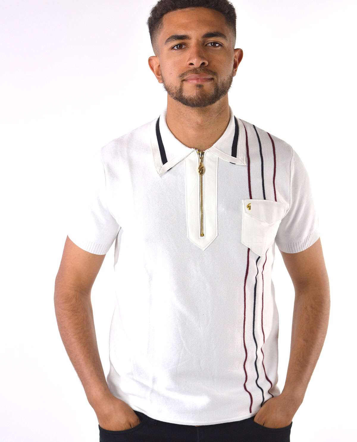 Gabicci Vintage – Robyn Short Sleeve White – Knitted Polo – 50th Anniversary Special