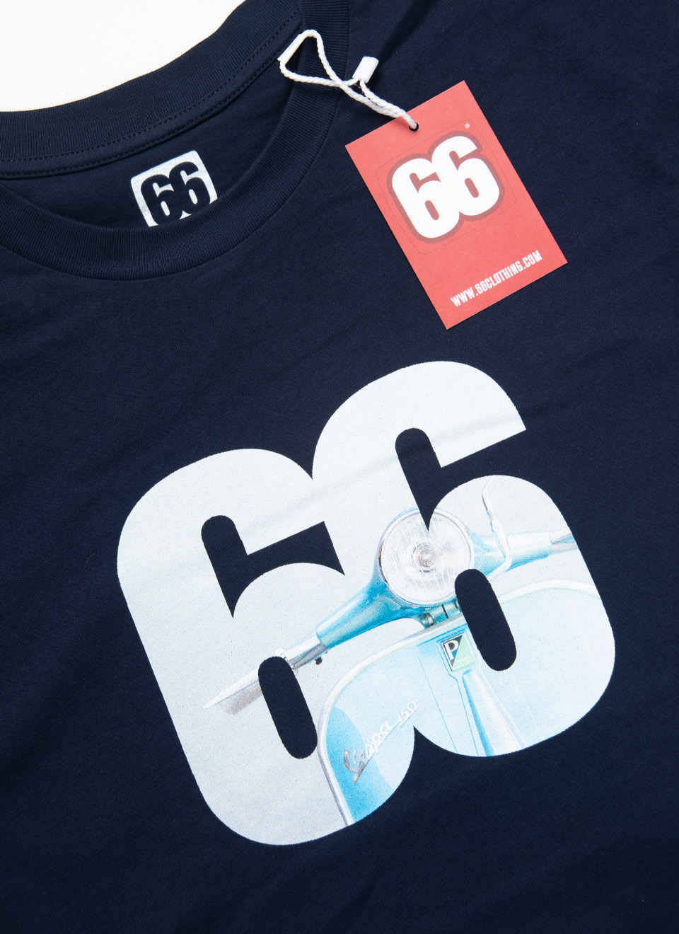 Bold, simple, unmistakably Mod. This tee features a classic Vespa GS front-on, framed perfectly within the bold ‘66’ logo. A nod to the scooters that helped shape a movement – stylish, rebellious, and still cool as ever. Clean lines, crisp print, navy backdrop – a proper mod essential.