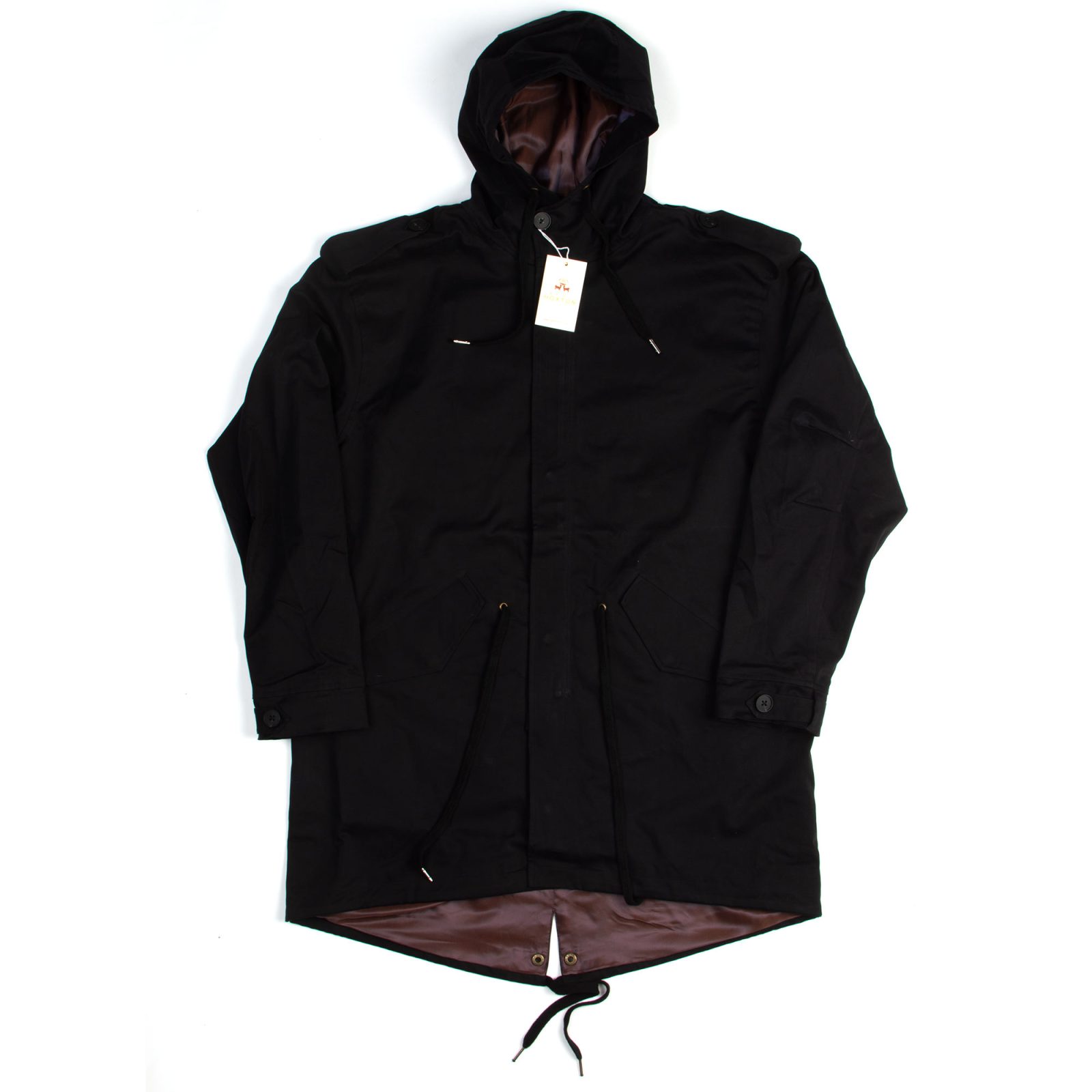 - Buttoned shoulder straps – a nod to military heritage