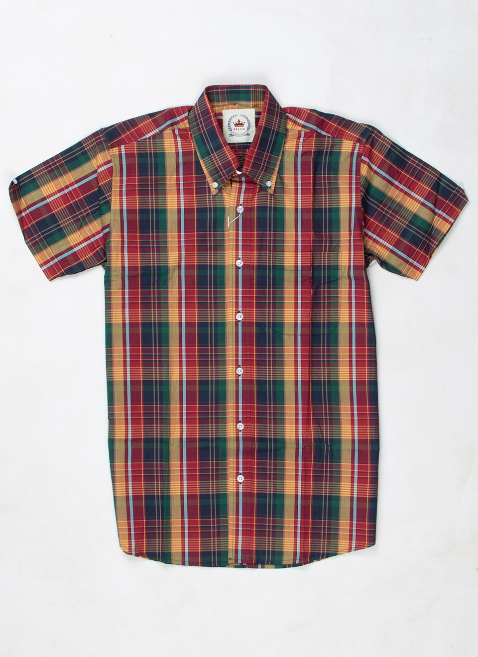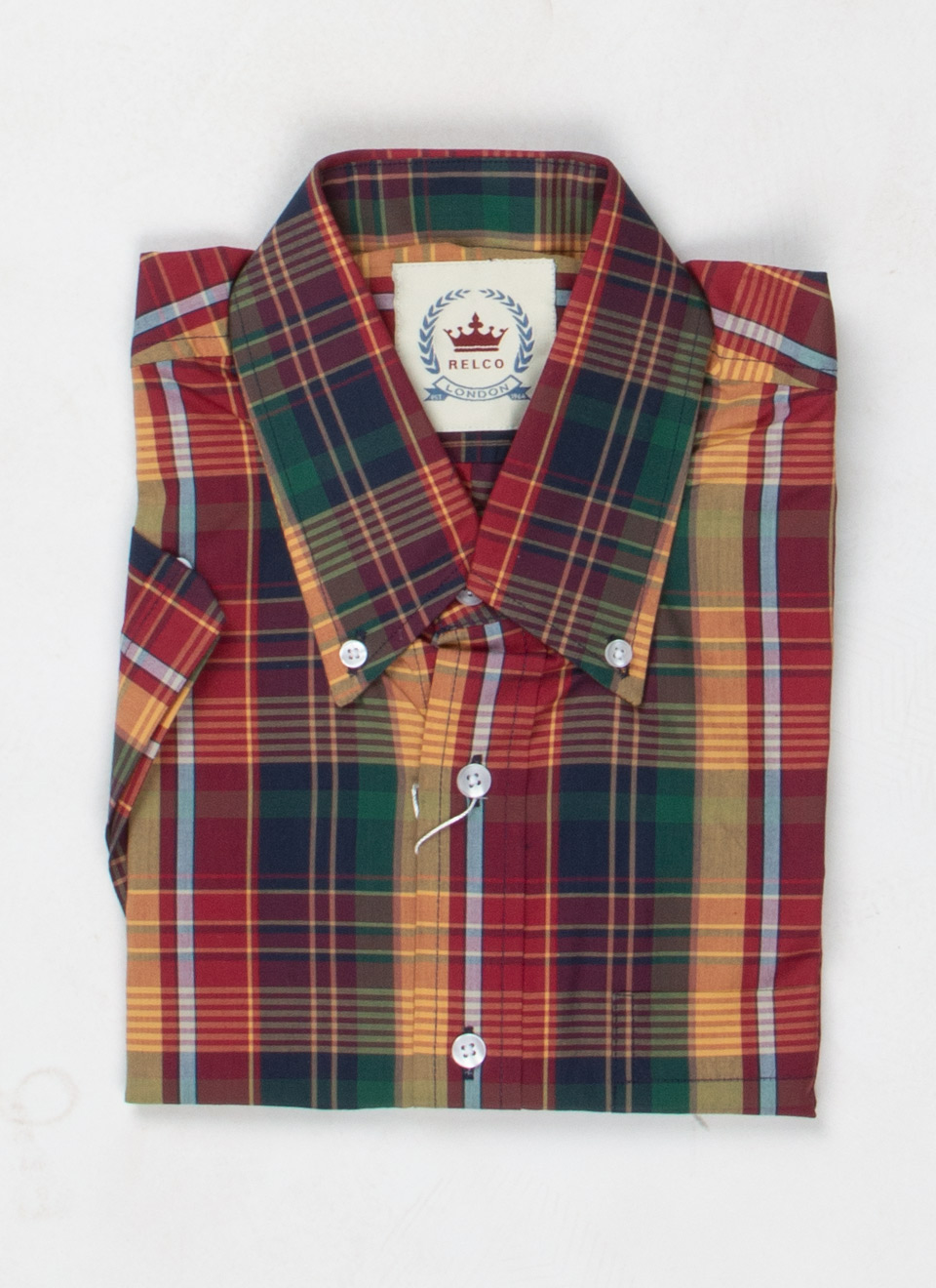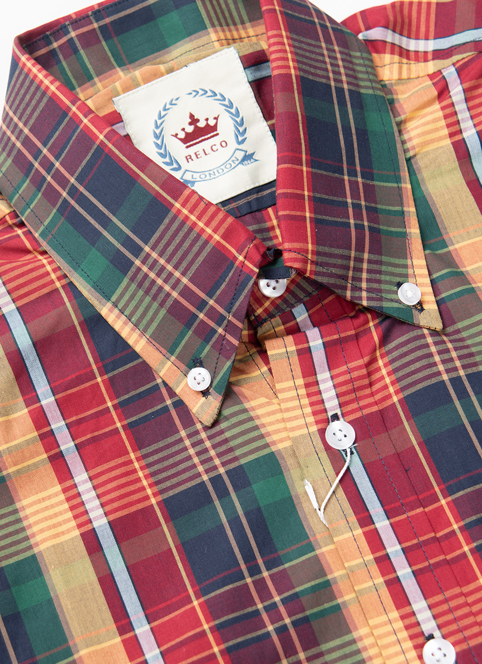 The check itself is where it stands out. A rich mix of red, mustard, green, and navy gives it a slightly sun-faded, vintage feel—something that would have sat just as comfortably in the late ’60s as it does now. There’s a bit of warmth to it, a bit of colour, but it still feels grounded and wearable rather than loud.