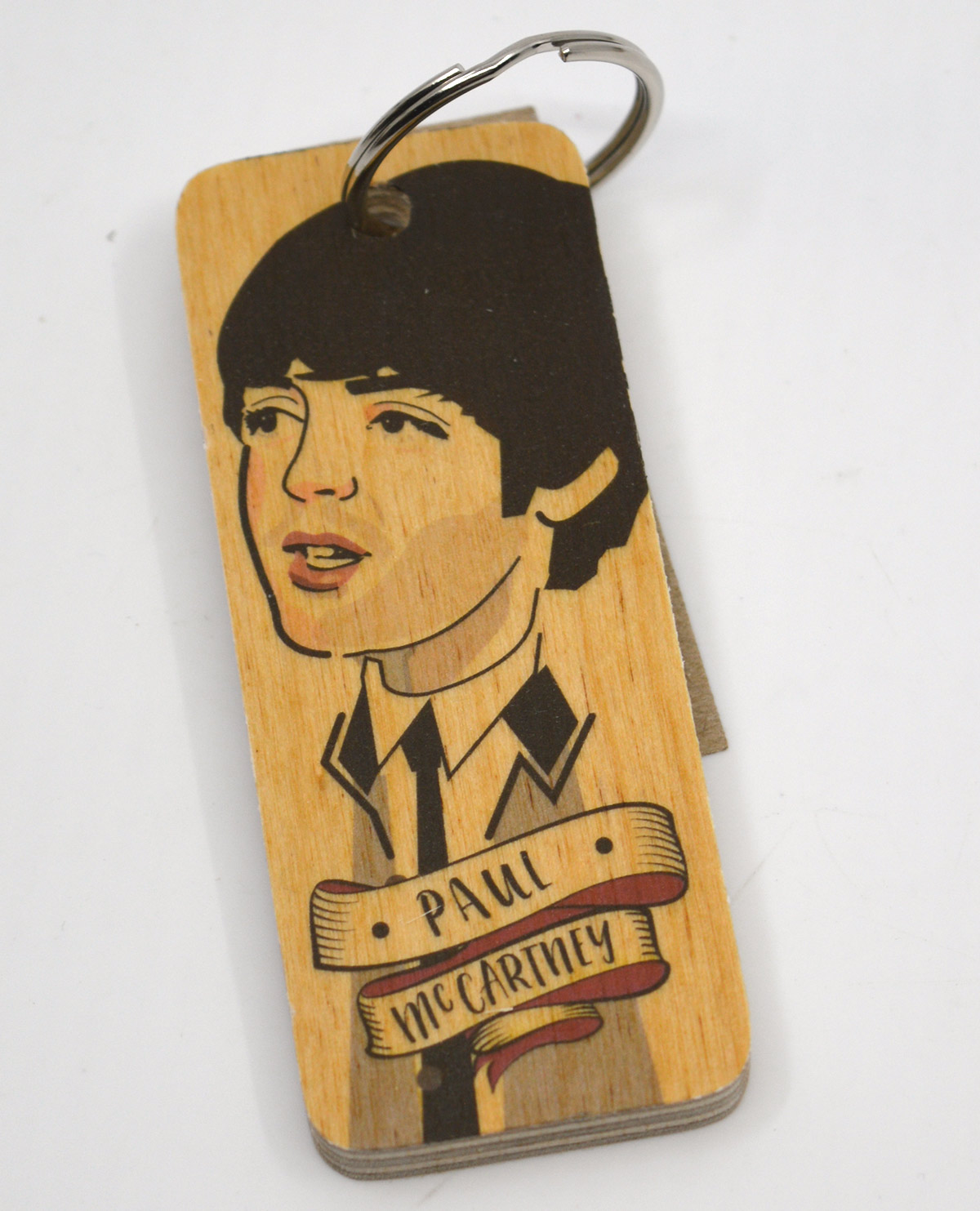 Fabulous illustrative wooden keyring capturing the likeness and spirit of the fabulous all four members of the Beatles. John, Paul, George and Ringo drawn as the fab four in their mop top era. Drawn by illustrator Jo Burrows in her own unique recognisable style. Natural wood rustic chunky keyring, each hand made so each one is completely unique. Water resistant and durable these items make a fantastic little gift.