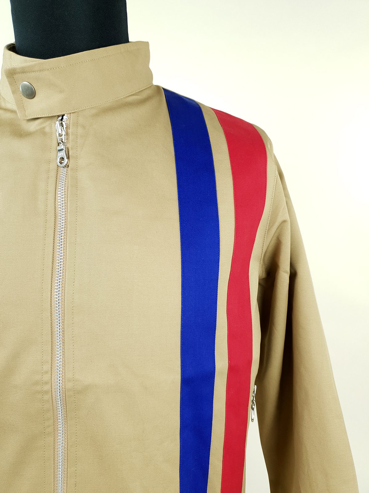 When designing the style we looked at countless 60s examples, and wanted to make the jacket more suited to UK climates and also ‘Tone Down’ some of the bright colour ways we had seen. We added ‘Cuffs’ and ‘Waist Rib’ like on a Harrington jackets, so the jacket hangs nice, without leaving a big gape.