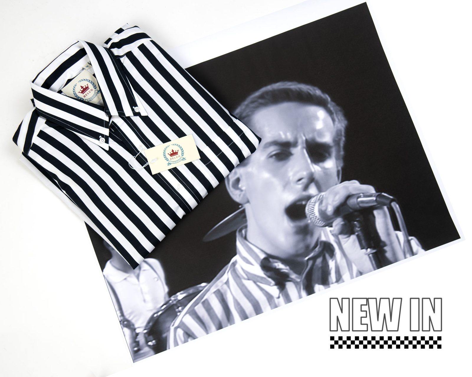 This Relco long sleeve shirt with vertical black and white stripes is a direct nod to one of the most iconic looks in ska history. Famously worn by Terry Hall in the music video for The Specials’ 1979 debut single “Gangsters”, this piece is more than just a shirt—it’s a statement.