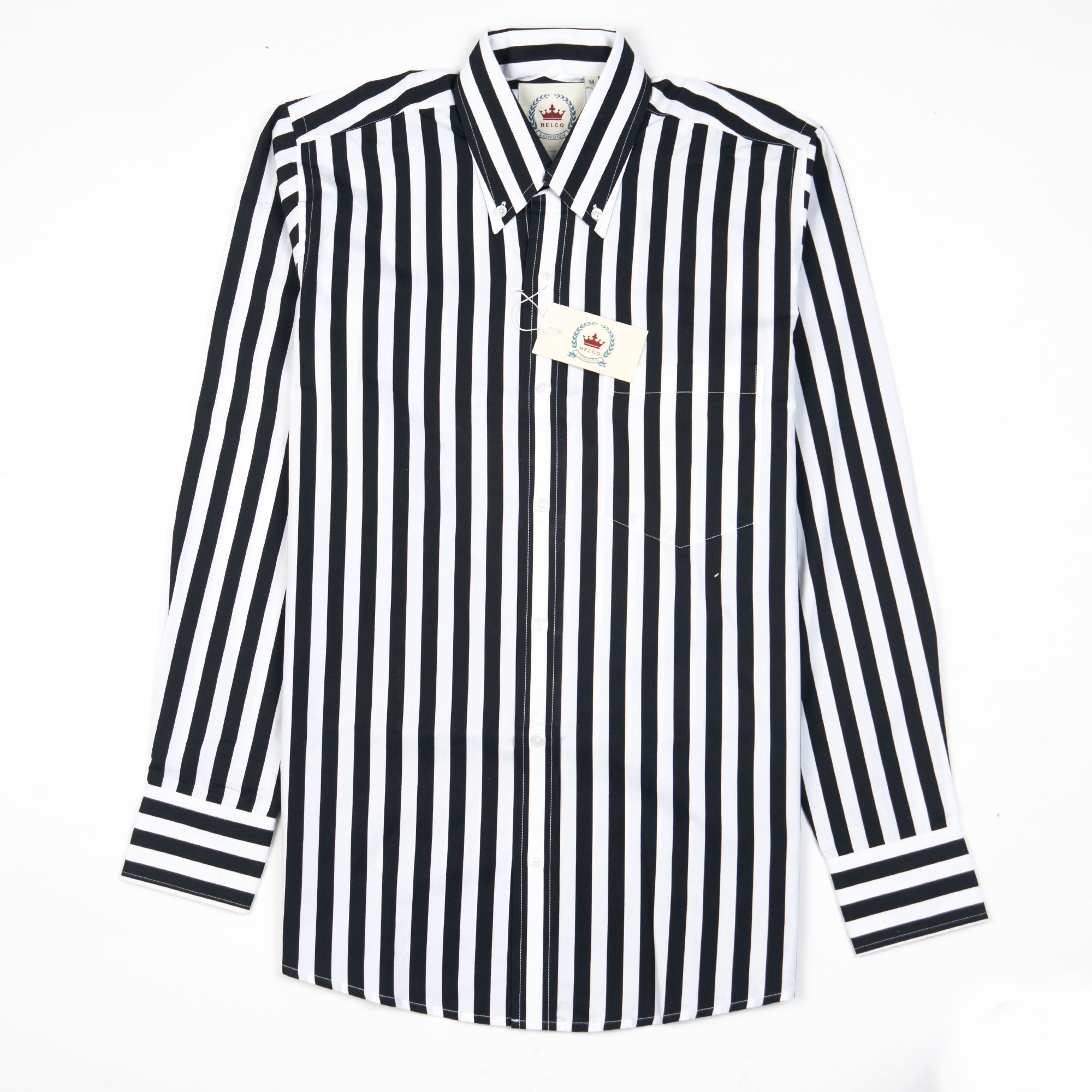 This Relco long sleeve shirt with vertical black and white stripes is a direct nod to one of the most iconic looks in ska history. Famously worn by Terry Hall in the music video for The Specials’ 1979 debut single “Gangsters”, this piece is more than just a shirt—it’s a statement.