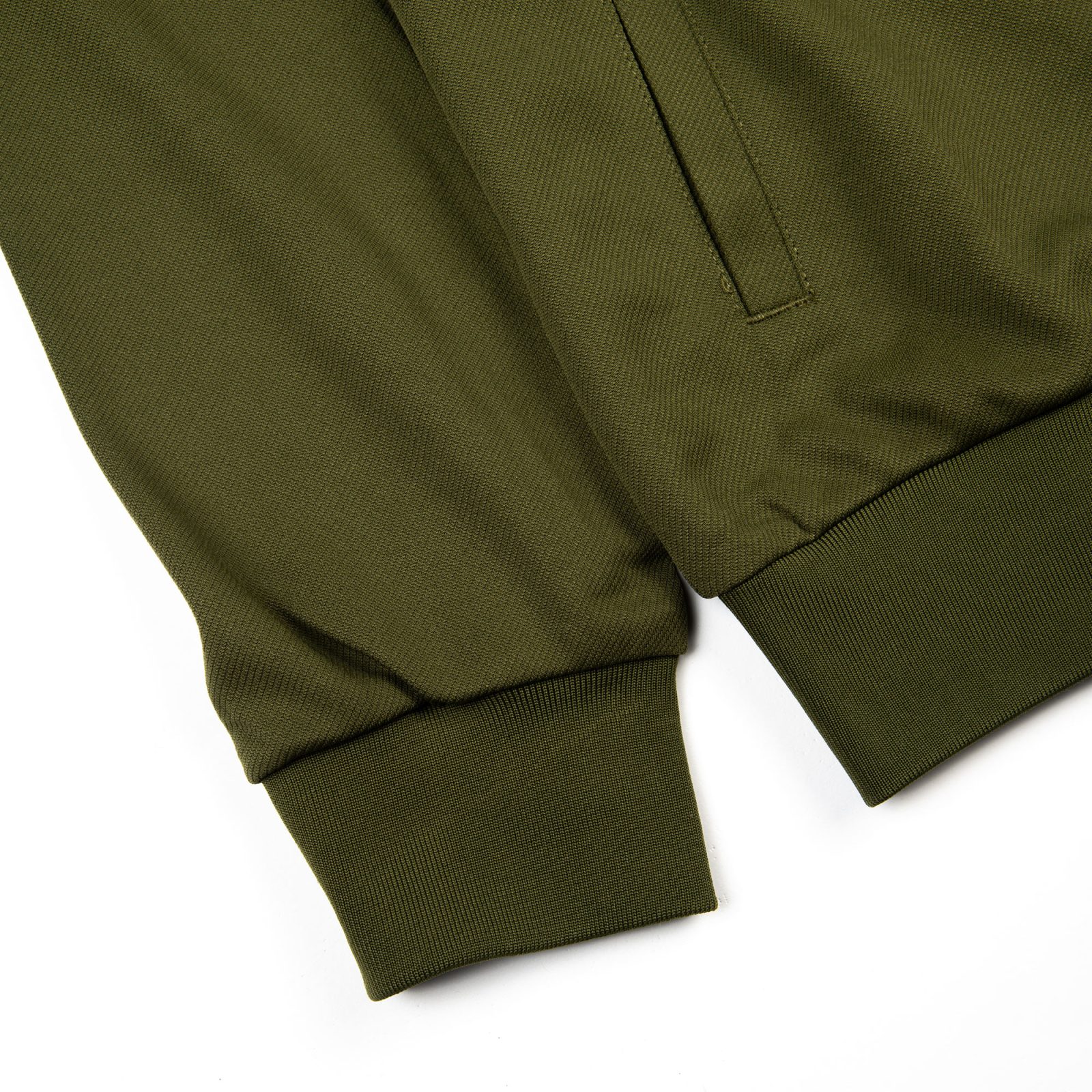- Ribbed collar, cuffs & hem