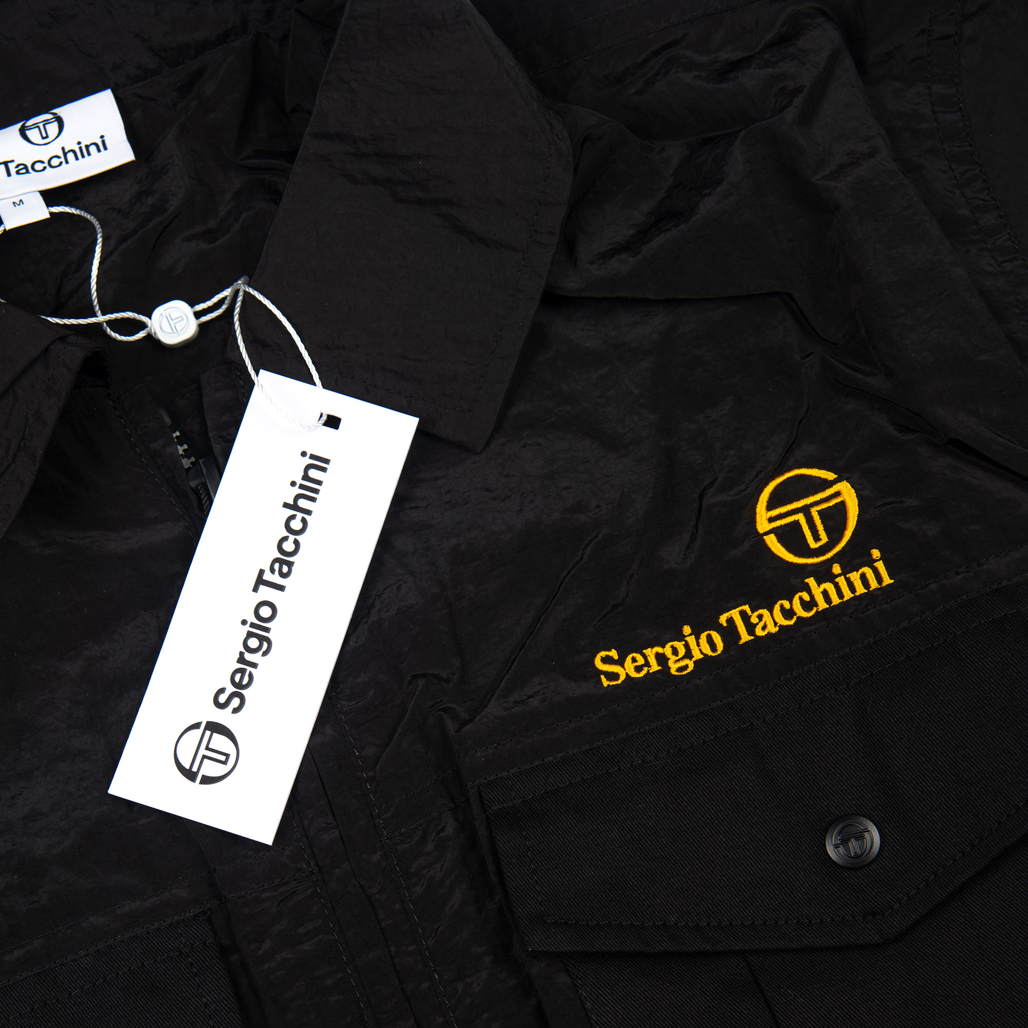 The Sergio Tacchini Luciano Shacket in Black is a stylish hybrid between a shirt and a jacket, offering a perfect balance of structure and casual wearability. Designed with a sleek, slightly crinkled black fabric, this piece exudes a contemporary, streetwear-inspired aesthetic. The Sergio Tacchini logo embroidered in yellow on the chest adds a subtle pop of color, while the buttoned chest pockets and zippered front provide both functionality and style.