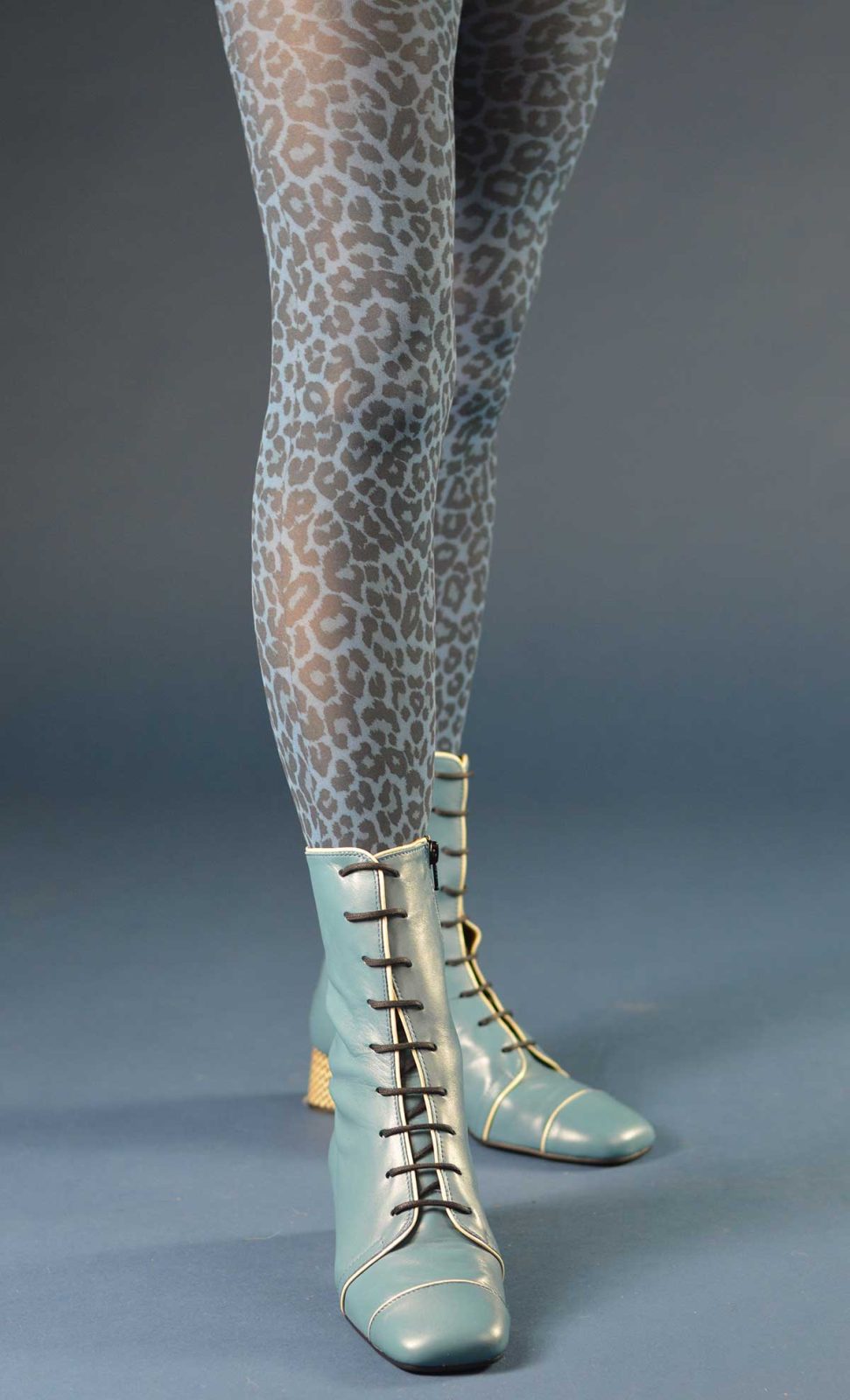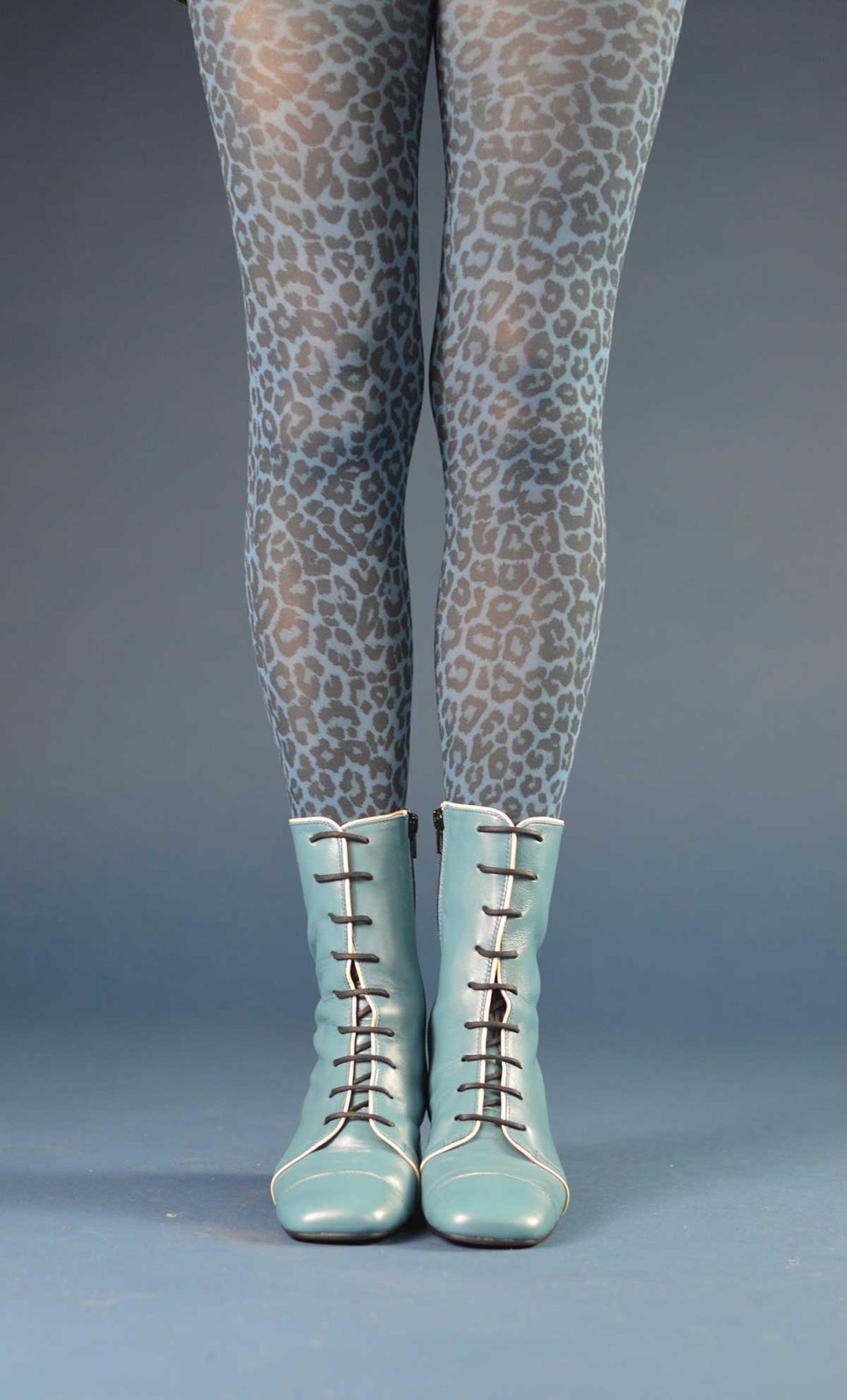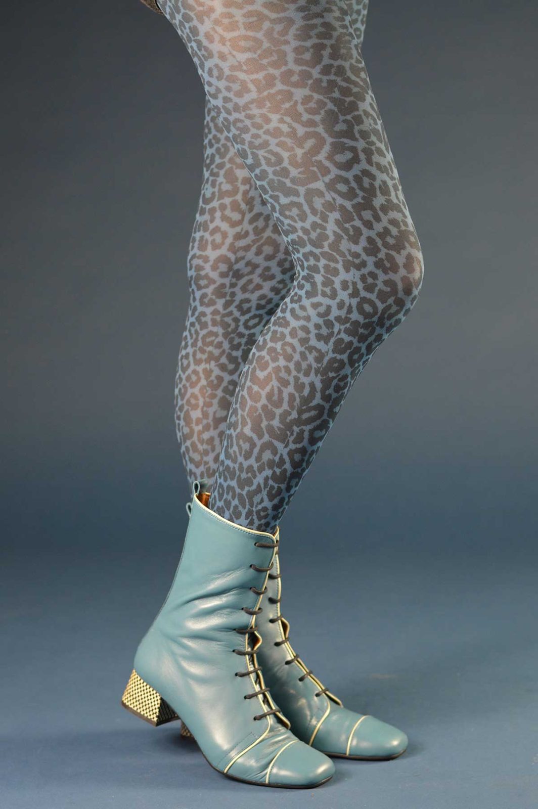 Small Leopard Print Tights in Denim – Women’s vintage retro 60s – 70s style