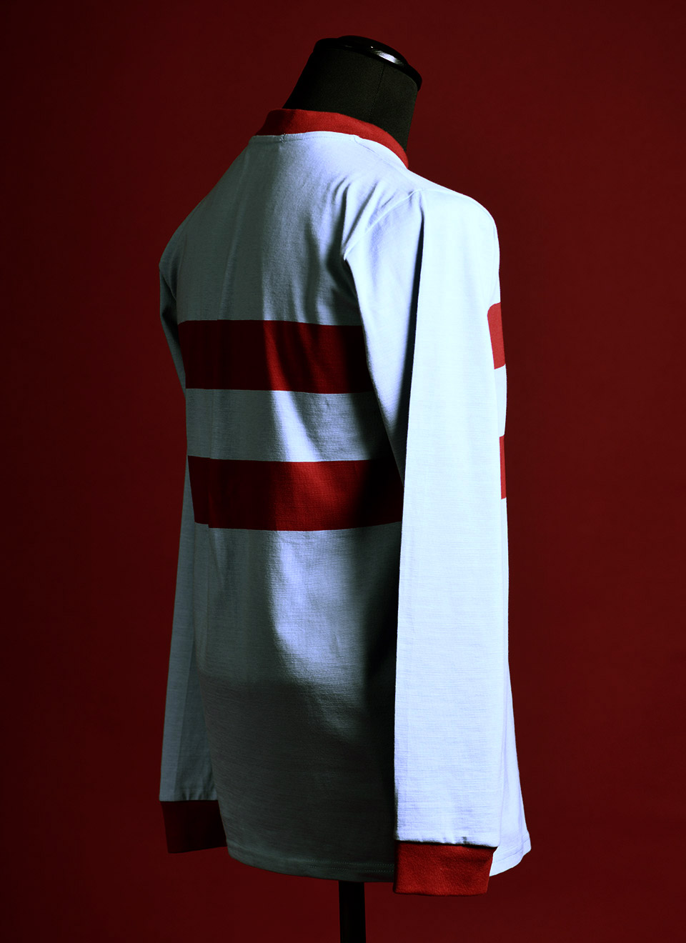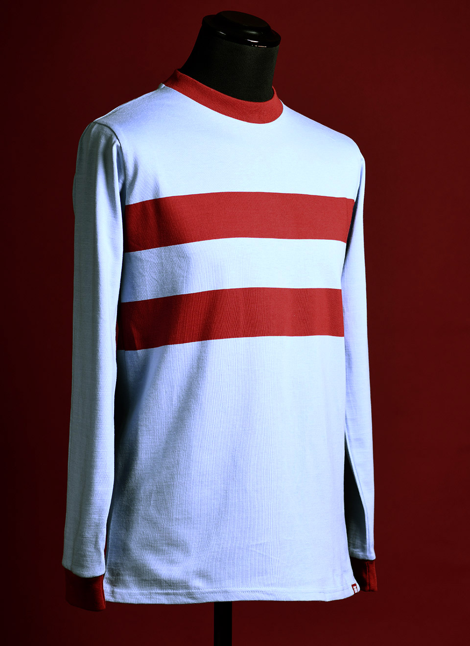 Bobby Moore was a very good dresser, and wore some amazing outfits, and we wanted to do something around him. When doing research this top popped out to me, and thought would work well as a Tshirt, and also because it was what the team wore in the 60s and early 70s.