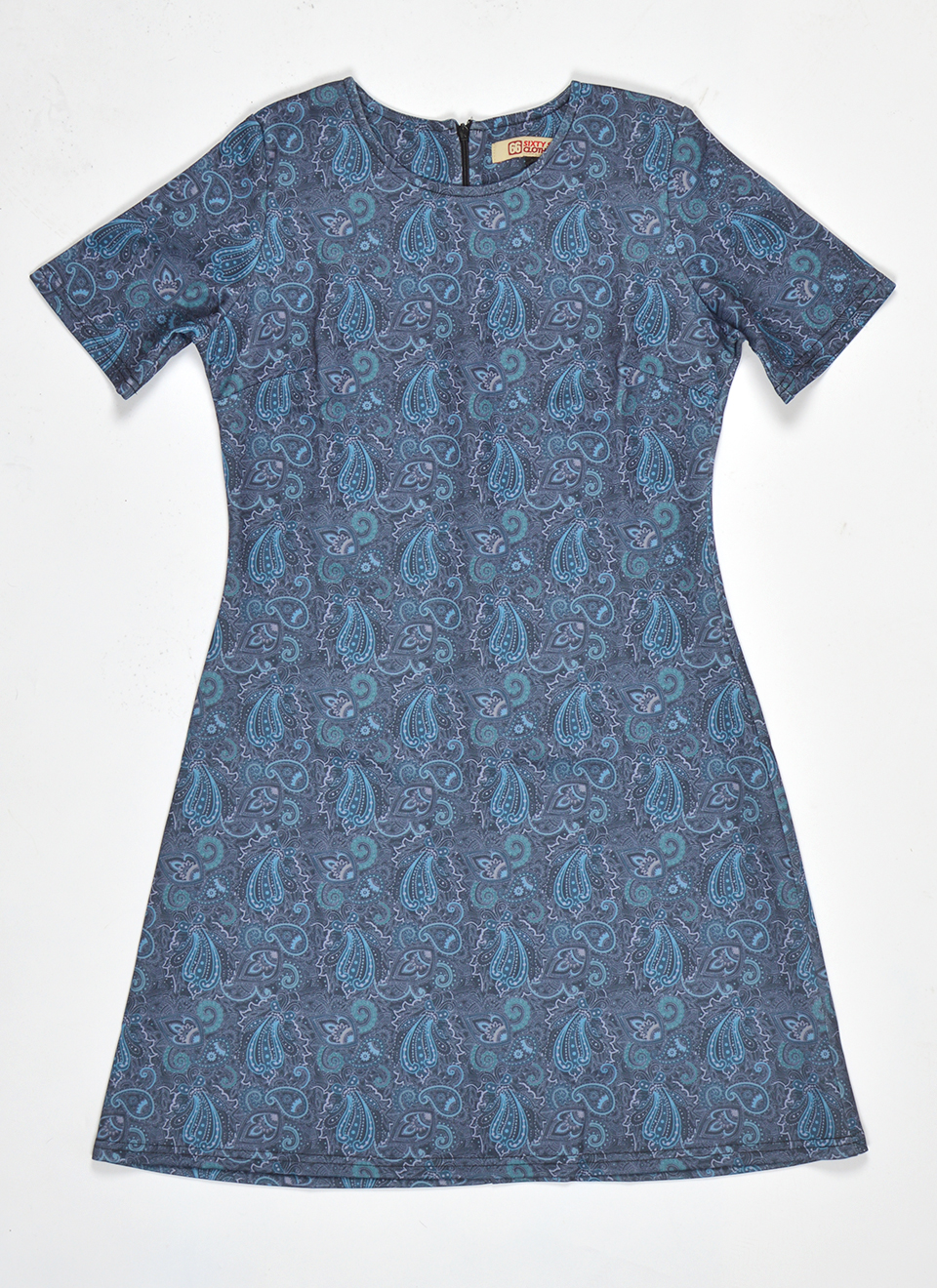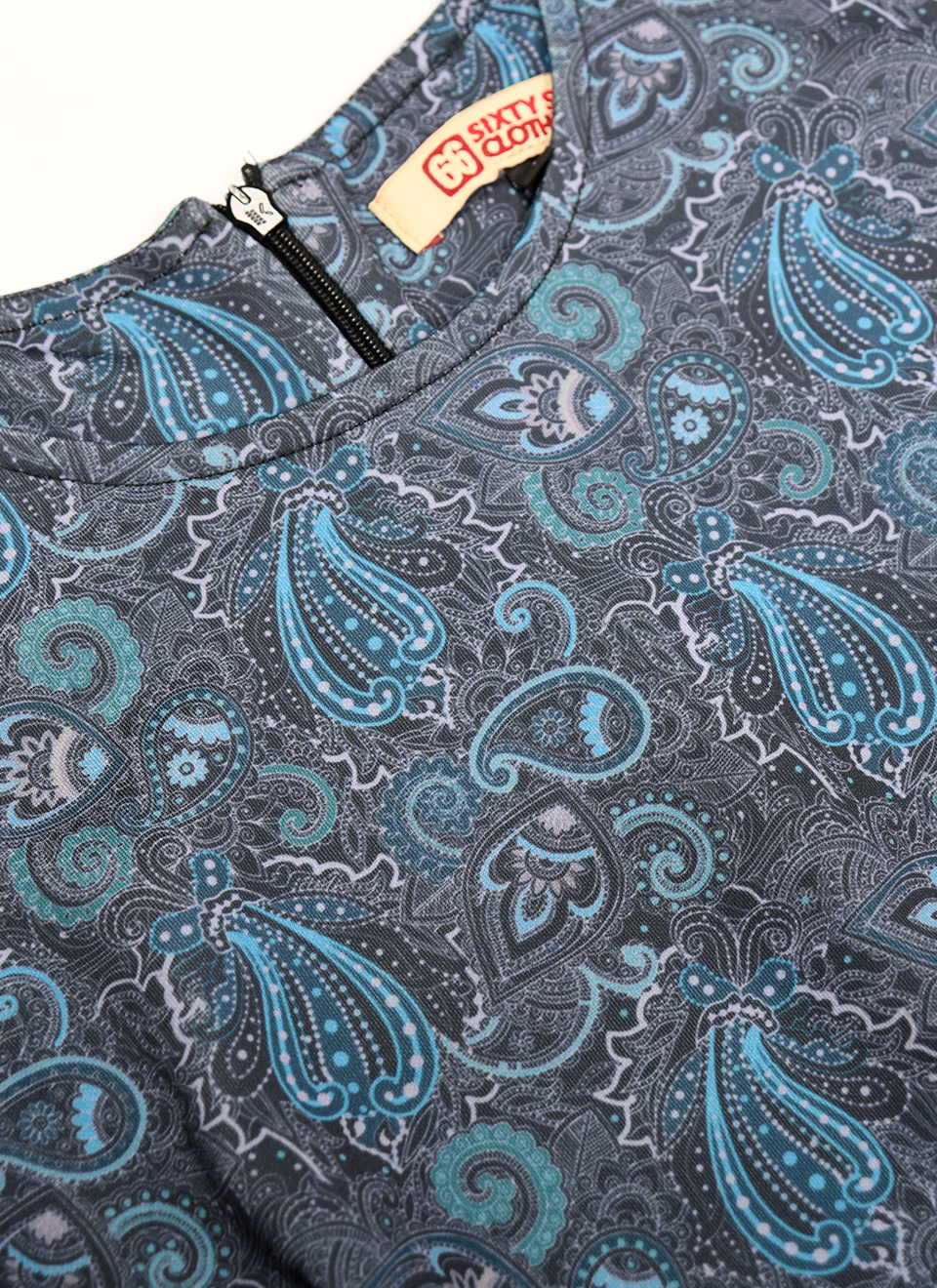 The ‘Carly’ Dress in Shades Of Blue Paisley – UK Made 60’s Style Mod Dress