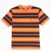 The top has 2 sets of stripes, one here down one side, and again on the pocket. A simple placket with matching buttons, and vintage styled collar