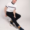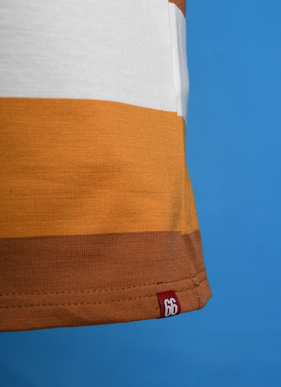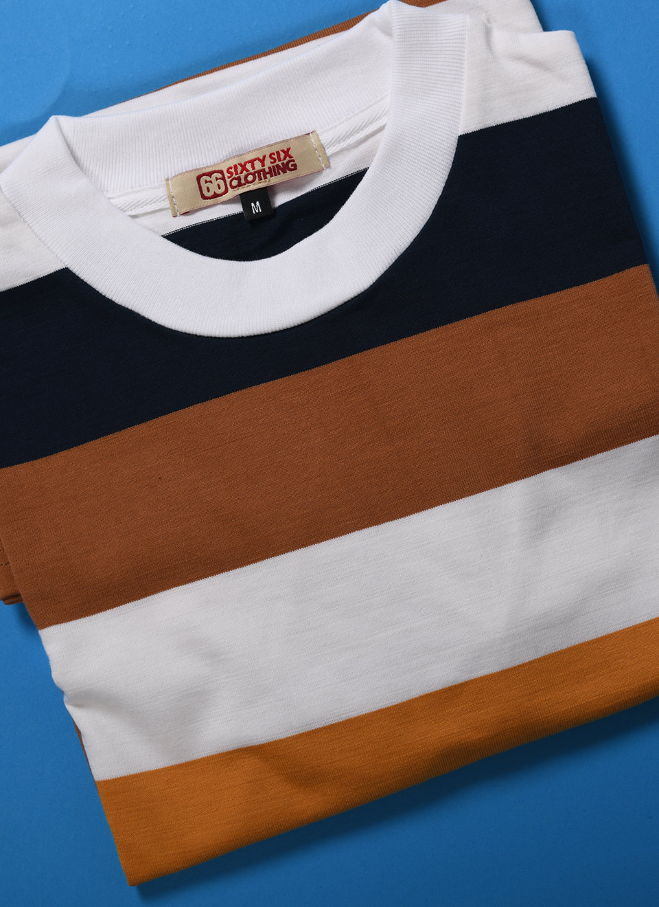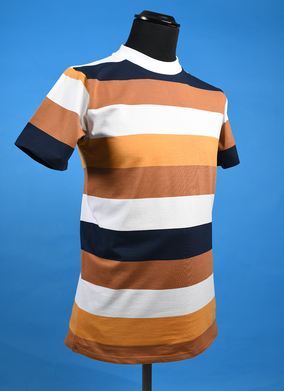 Great styled t-shirt with big bold and unusual coloured stripes. The high neck / collar makes this t-shirt unusual. Super swift delivery as come to expect from Modshoes.
