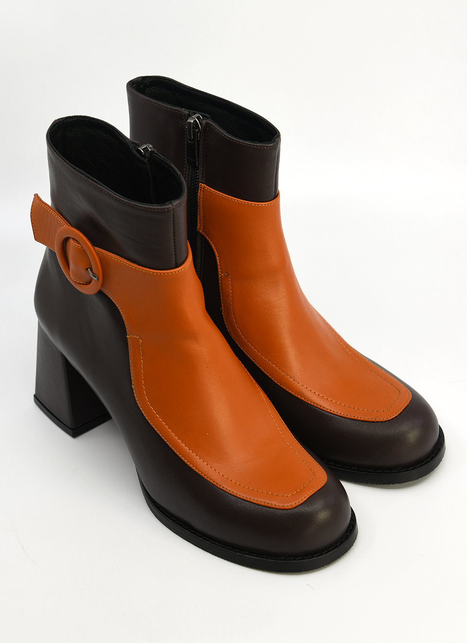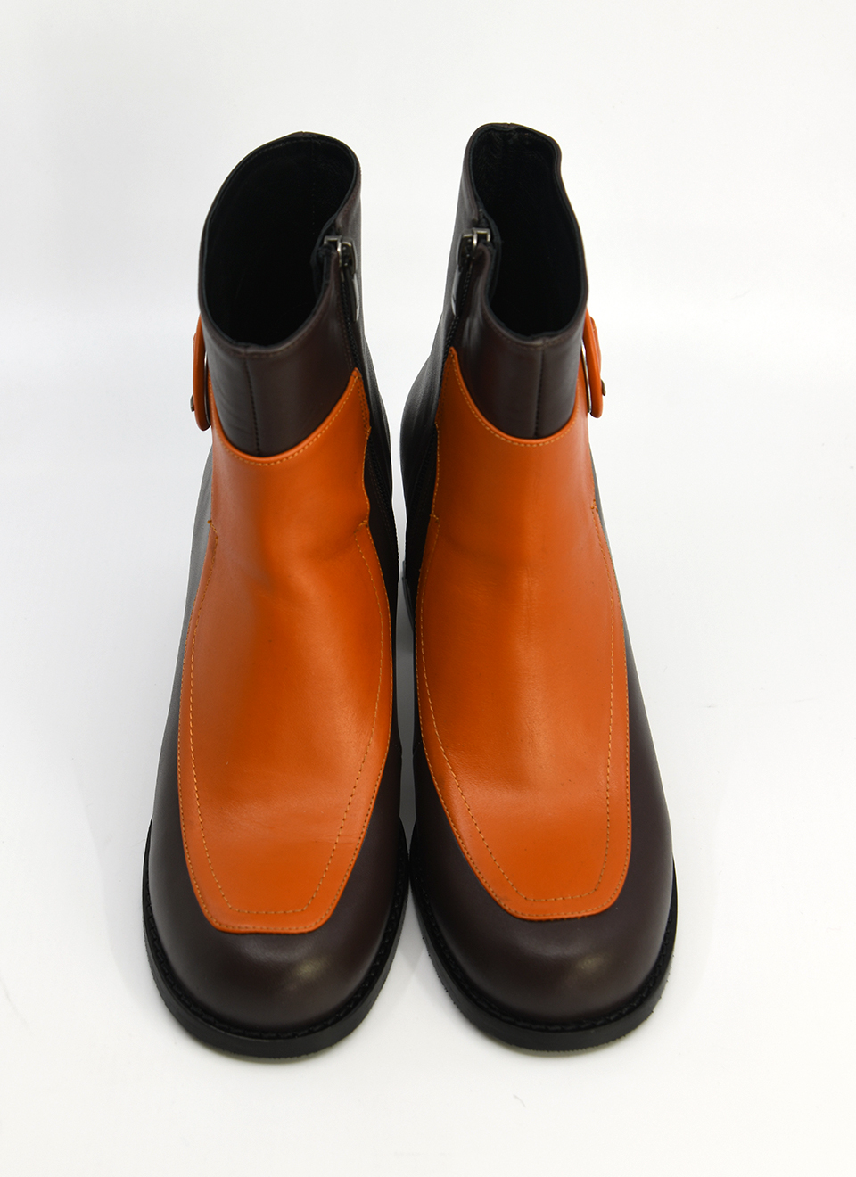 Introducing “The Jodie” in chocolate brown and orange, a statement boot inspired by the chic mod style of the 1960s and ’70s. These boots are designed for those who love to stand out with retro flair while enjoying modern comfort. Crafted from premium-quality leather, “The Jodie” boasts a smooth, rich two-tone finish that captures attention and adds a pop of colour to any outfit.