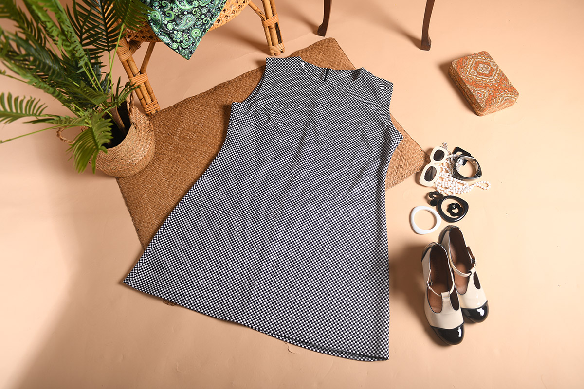 Designed by us, and made here in the UK, this new Lucy dress comes in a classic retro black and white check. Just perfect for fans of the sixties, or indeed the late 70’s early 80’s “Two-Tone” look.