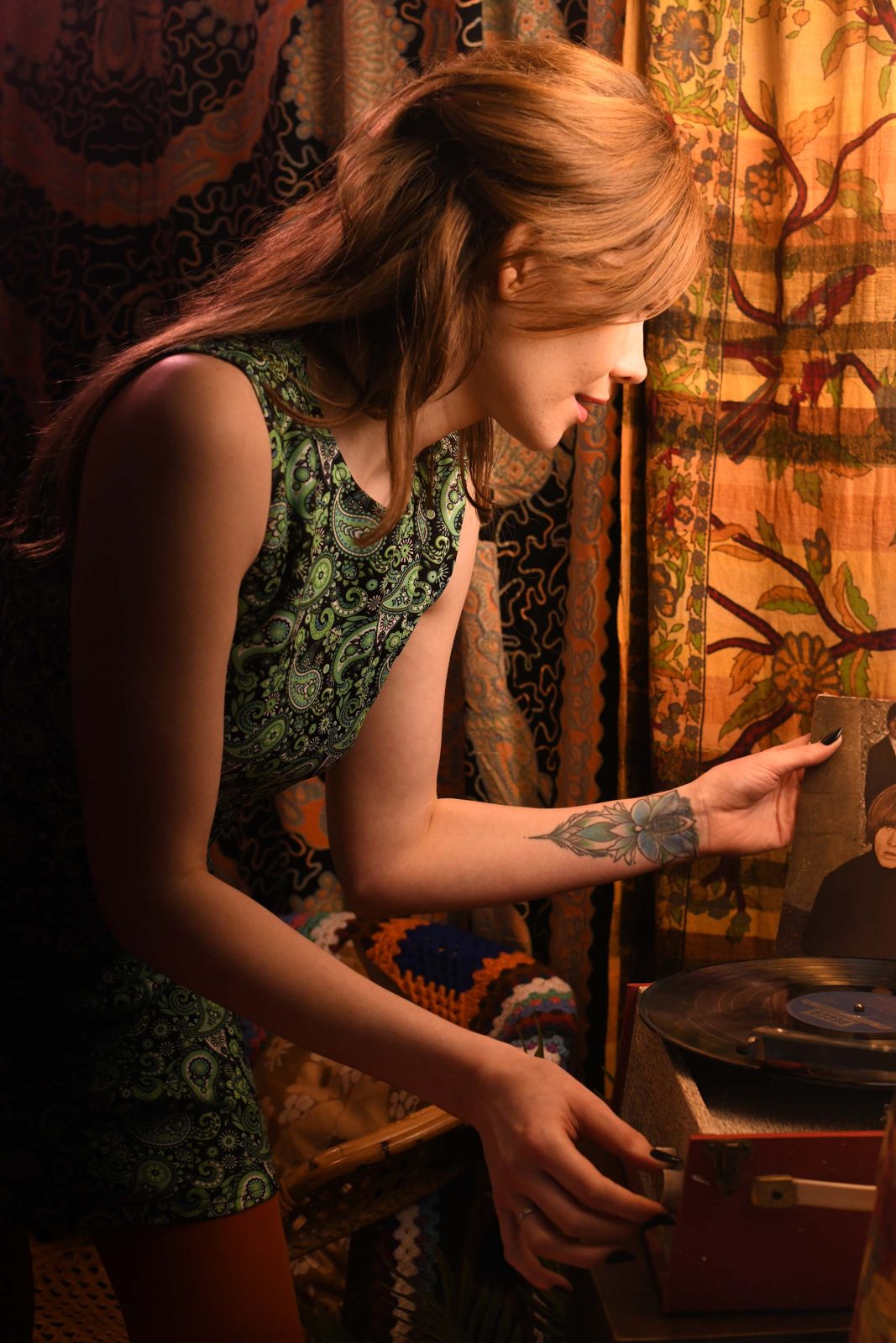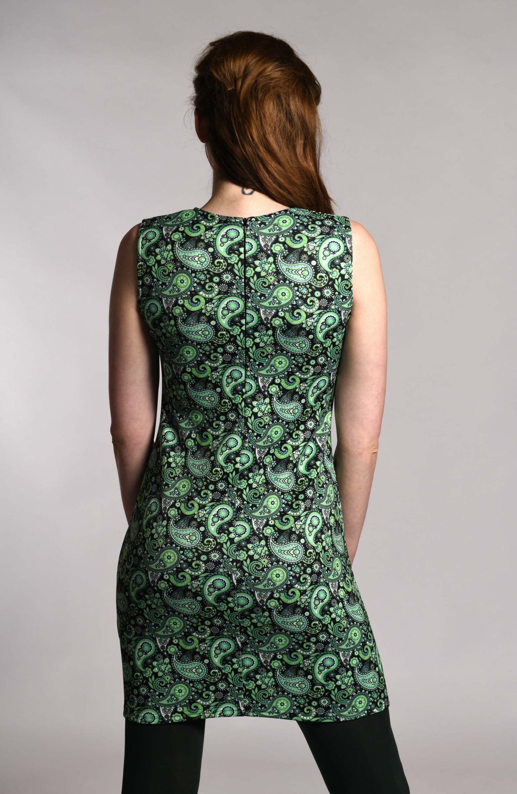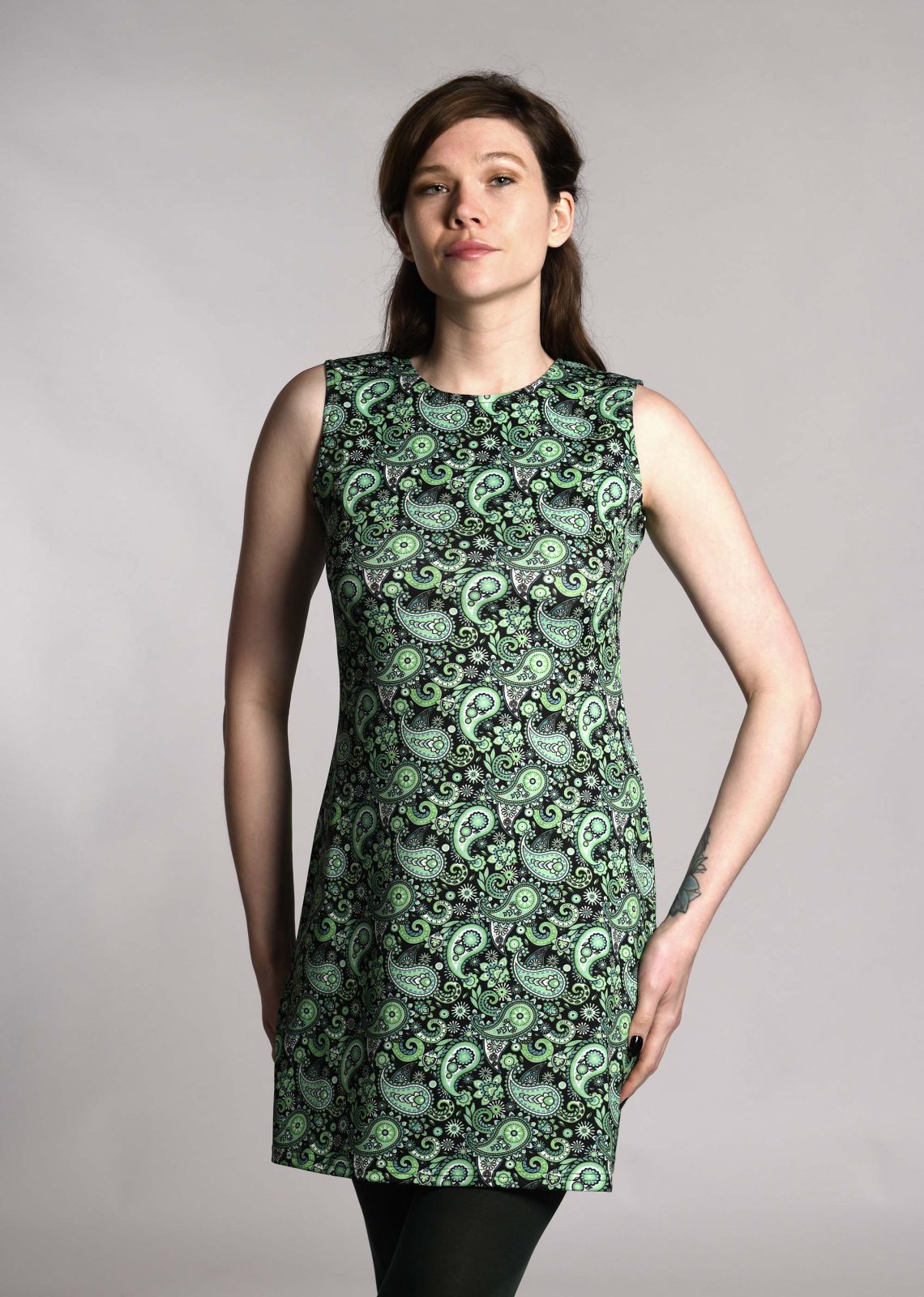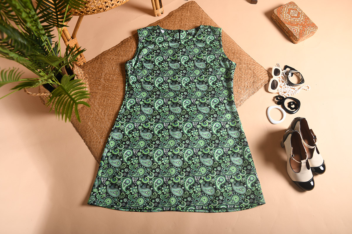 The ‘Lucy’ Dress in Green Paisley – UK Made 60’s Style Mod Dress