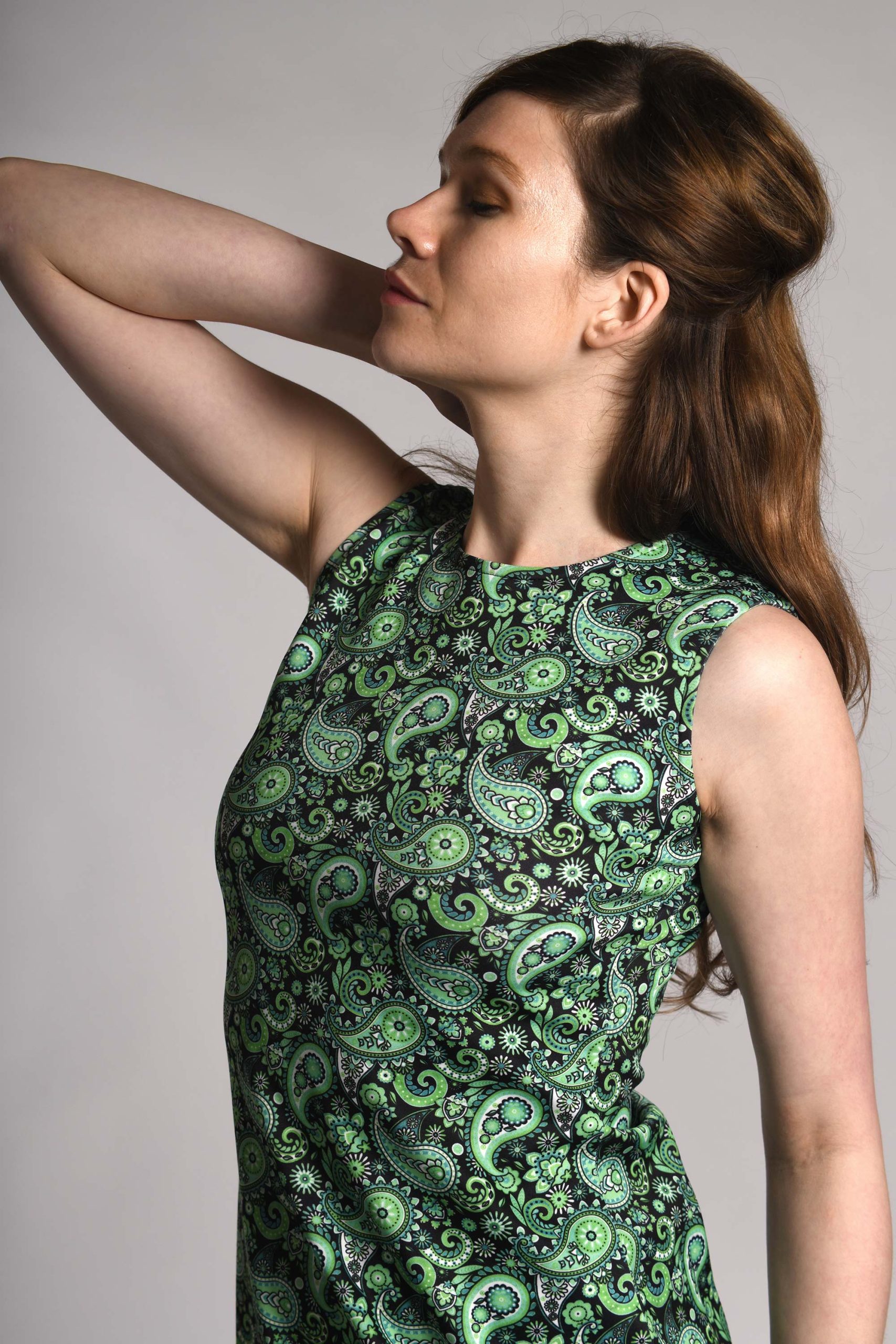 The ‘Lucy’ Dress in Green Paisley – UK Made 60’s Style Mod Dress