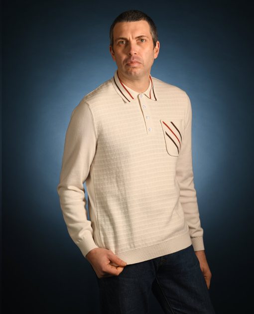 This is a copy of a top from the late 60’s, early 70’s, that we had here in our archive of vintage clothing at 66 Clothing & Mod Shoes. When I wore this top out, it always got a positive reaction, and people asked if it was one of our designs! So you know what has to happen next, we made a version of it. The distinctive pocket design and 2 colour lines, simply isn’t something you see on the high street. So whilst the design is simple, it is also different enough to set it apart from the average.