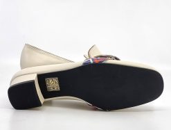 The Marsha has a real retro feel, and is based on an original vintage “Pilgrim” style shoe. In cream, blue or coral leather , with contrast quirky chevron patterned trim, that ties in with the “Isabella” chevron design on the dress and tights, and really makes them stand out in the crowd. The big, circle, pewter effect buckle really adds to the 60’s vibe. They have a 3 cm low block heel, and a gel cushion inside for day long comfort.