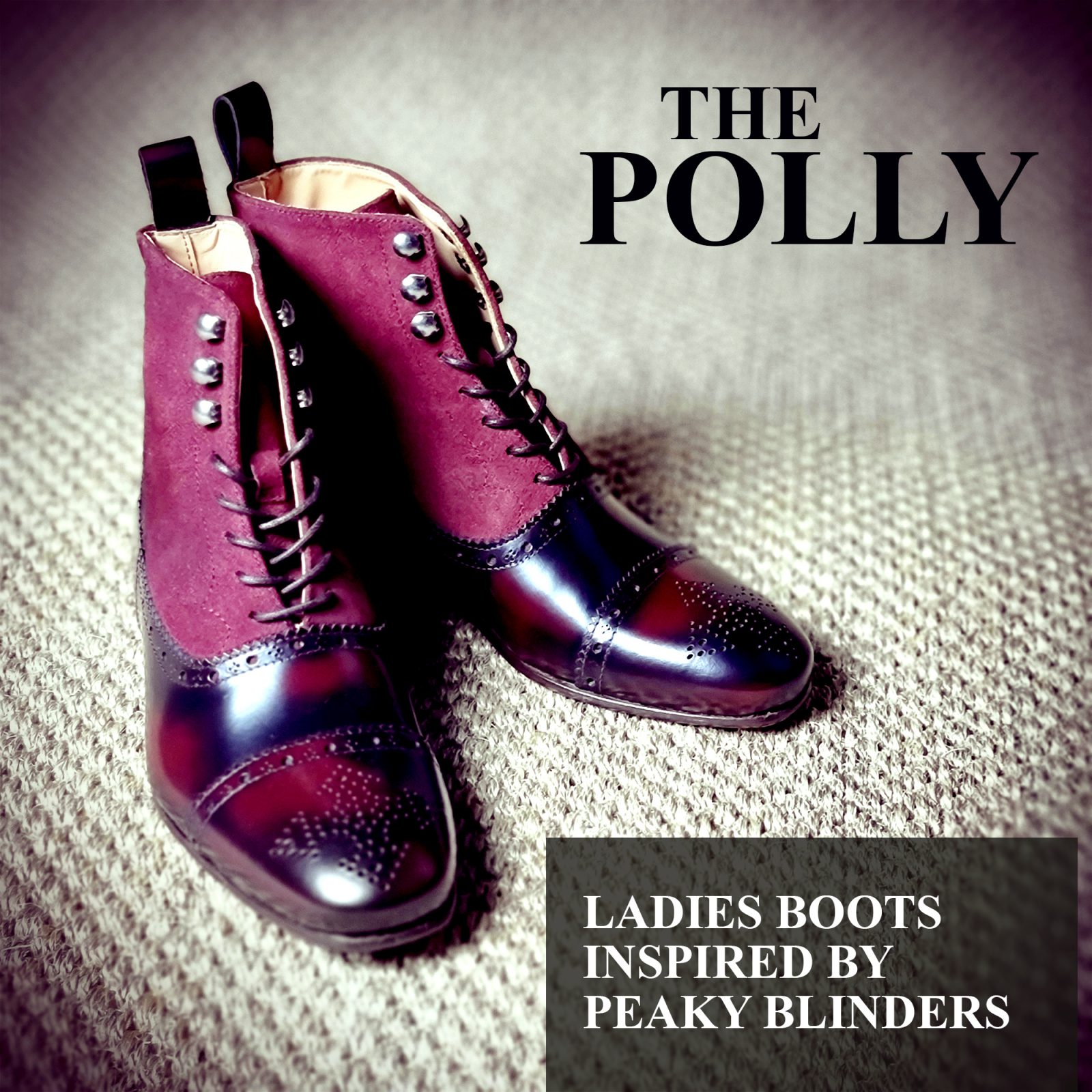 Here we have a new and exclusive boot that really is jaw-droppingly stunning. The “Polly” boot in oxblood leather and suede, has the classic Edwardian look that is so evocative of the “Peaky Blinders” era. The brogue detail is so beautiful on the front and back of the boot, and combines perfectly with the rich burgundy suede.