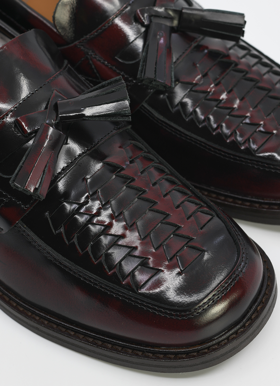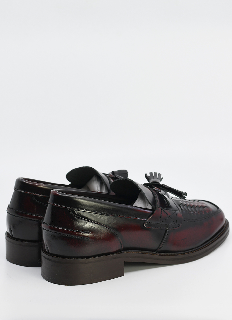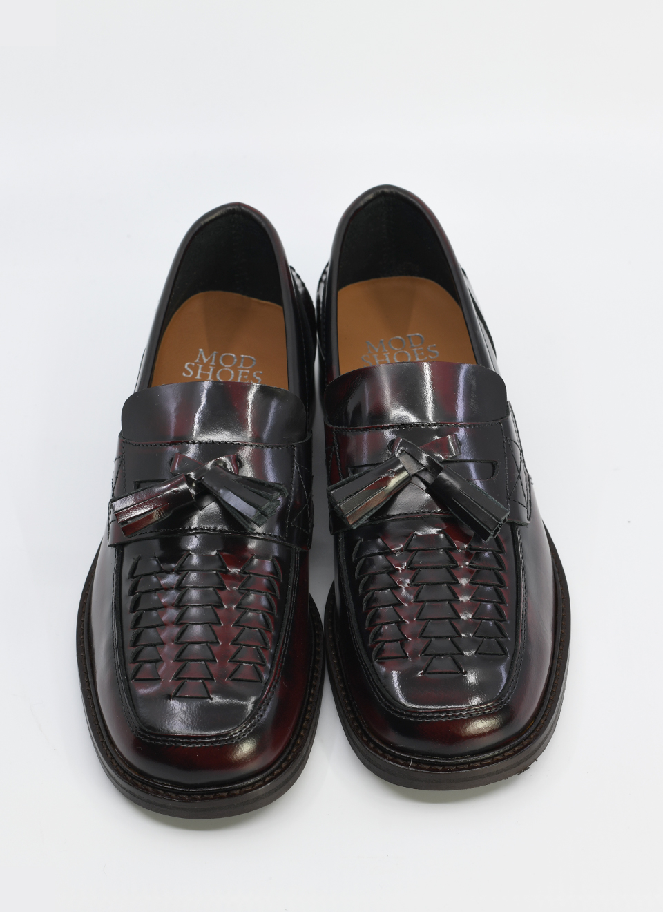 The “Scorcher May” In Oxblood Weave – Boxtop Tassel Loafers Women’s Retro 60’s 70’s Style Shoes by Mod Shoes