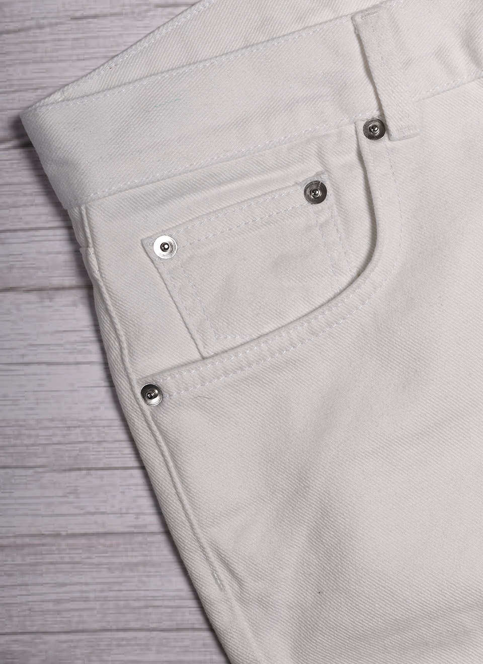 Perfect white jean. Just what one hopes for-a nice slim fit without being ‘skinny jeans’. These will go great with anything from a t-shirt to a blazer and will fit over chukka, Chelsea, or football boots without being a wide boot cut. A bit of stretch-just right!