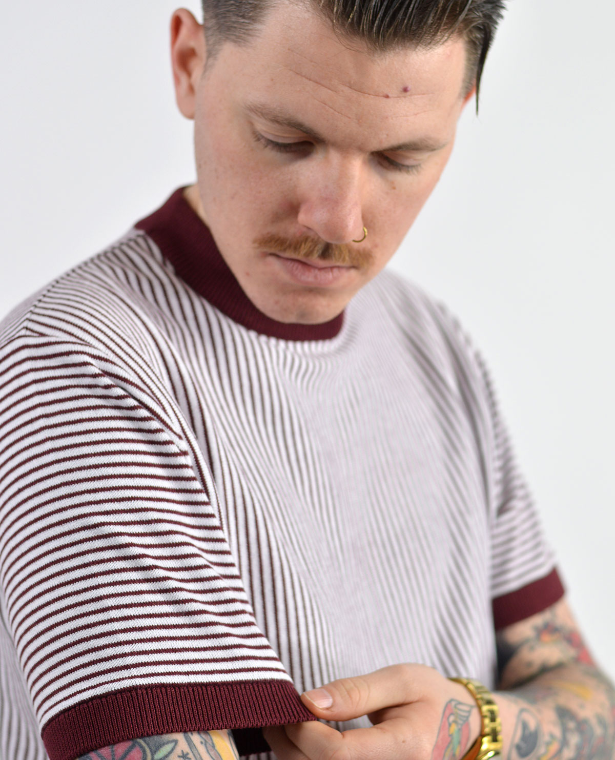 One has always stuck with me is the one you see here. The burgundy stripe with the lovely high collar. Is so simple but so cool. It’s so from that era. There are other pics of him in similar stripes. We hope to emulate some of those as well.