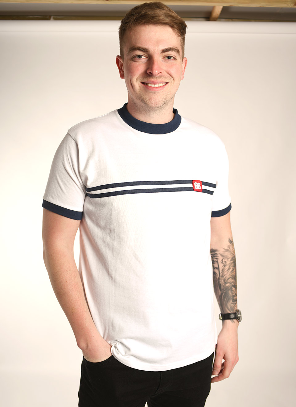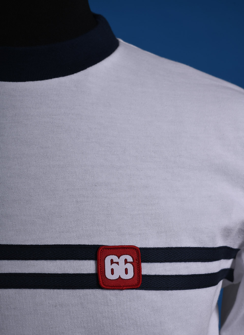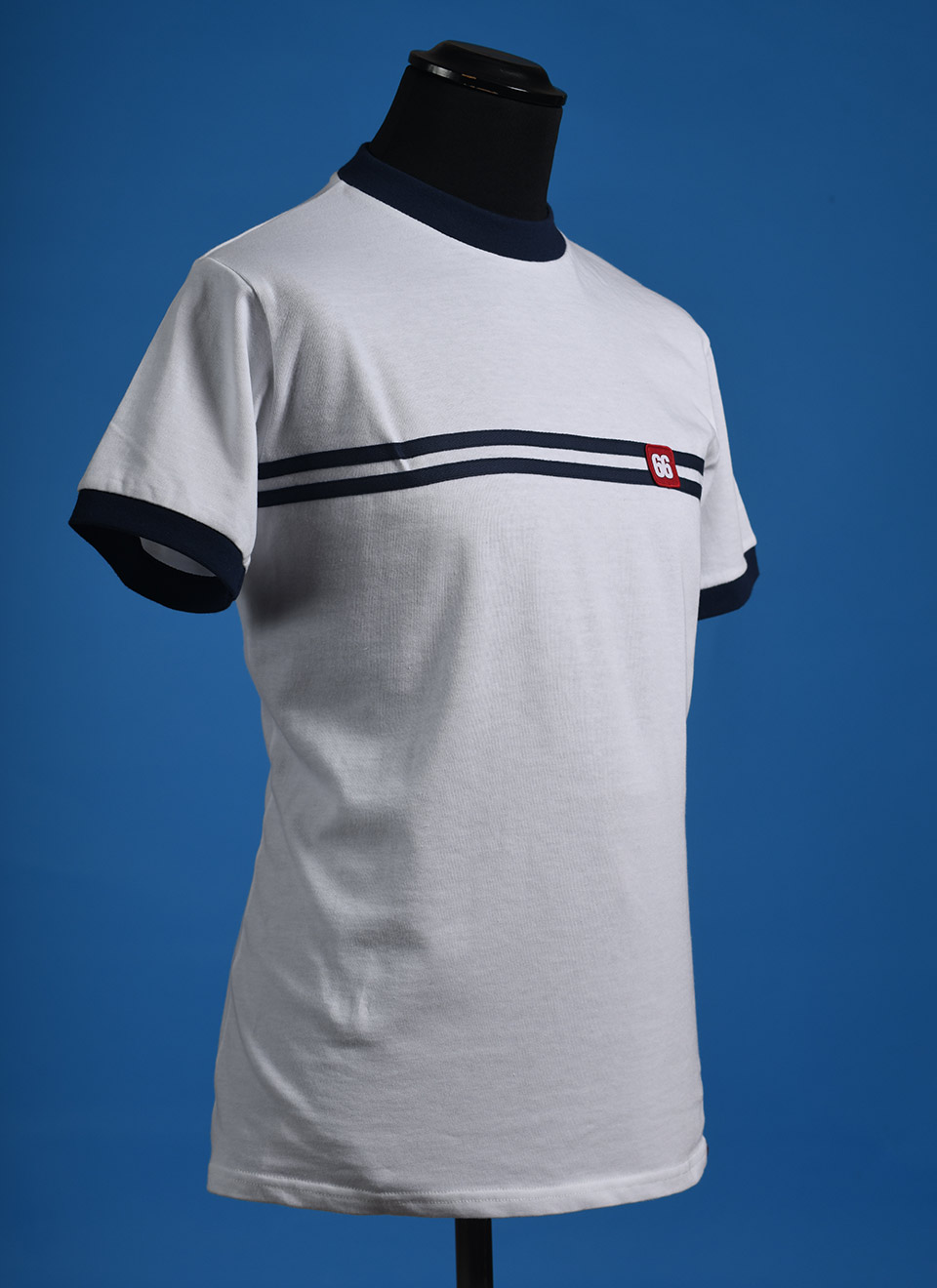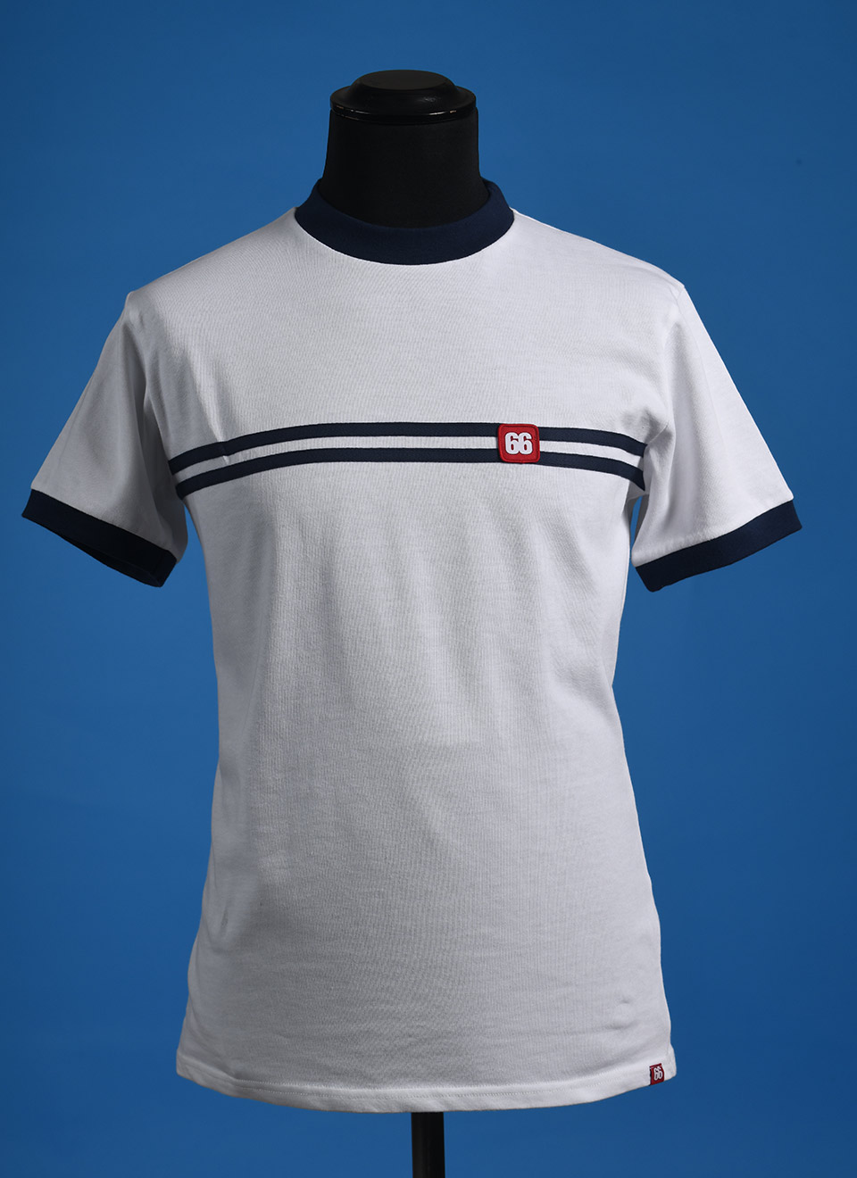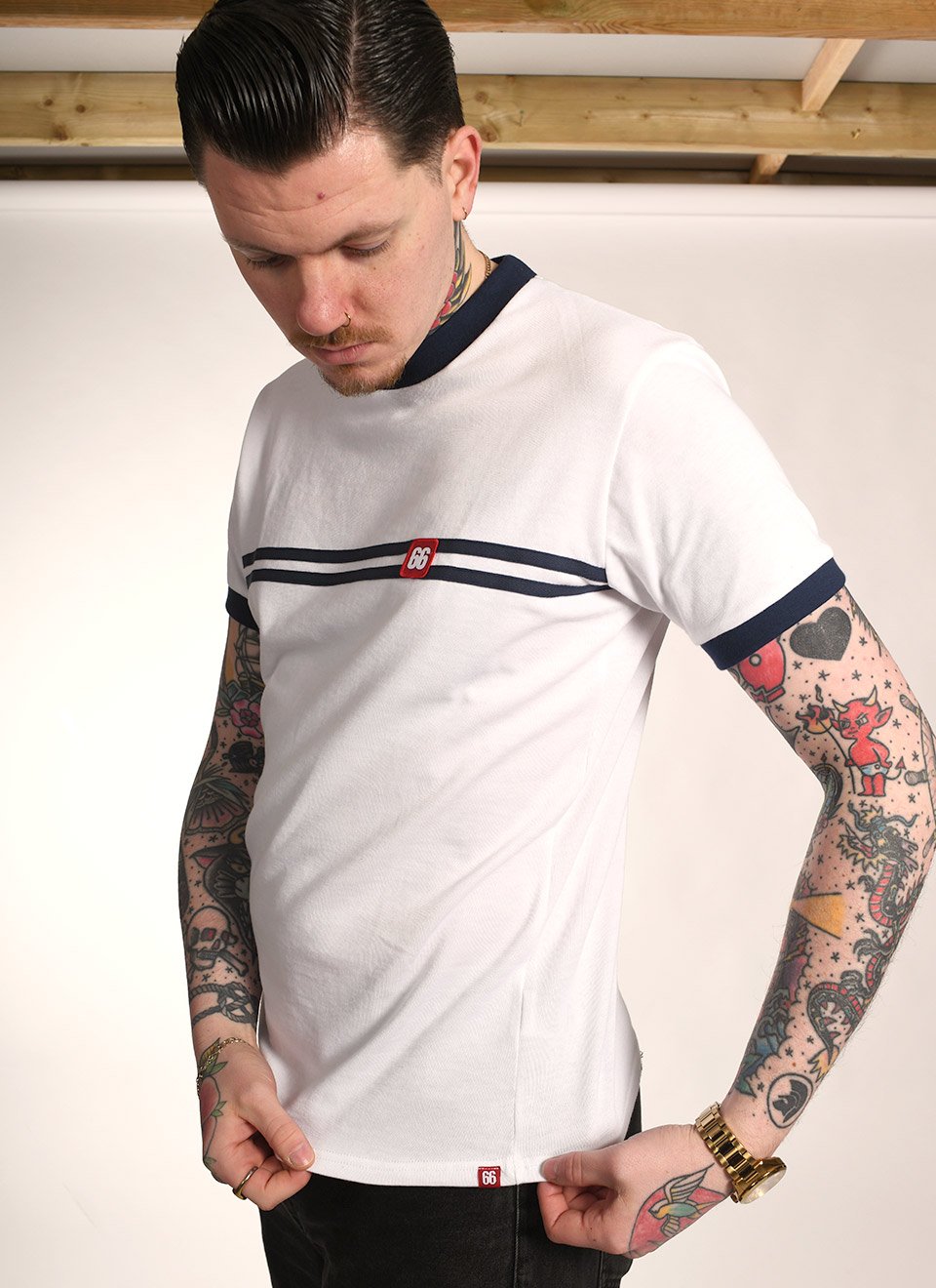 White and Blue Horizontal Stripe “Racer” T-Shirt By 66 Clothing Made In UK