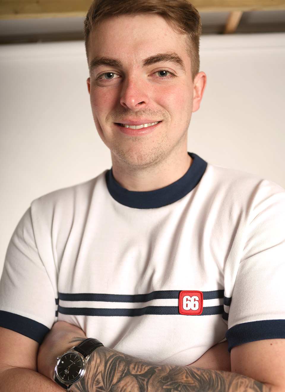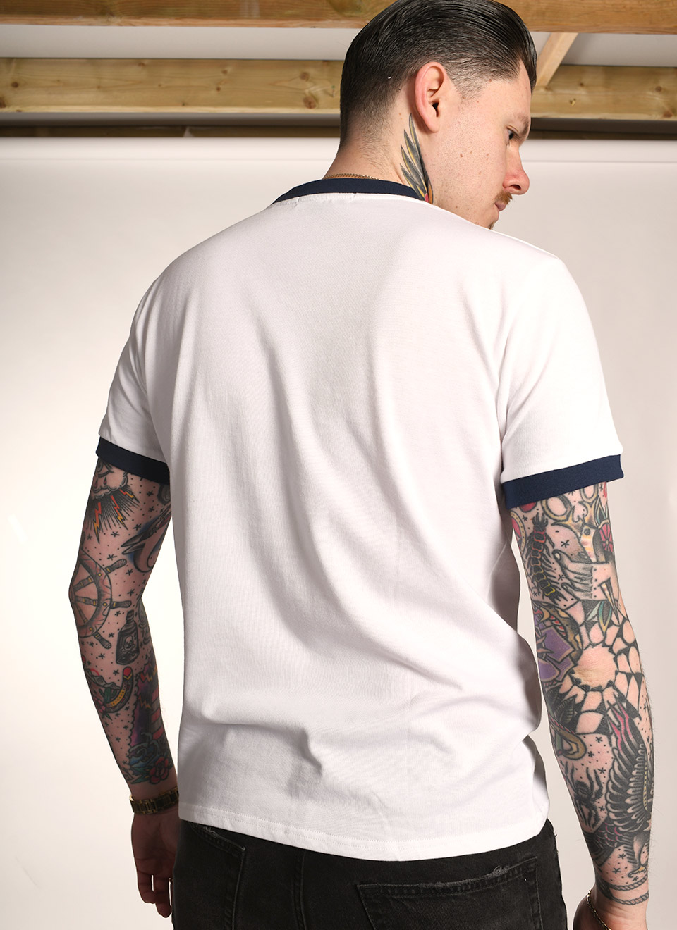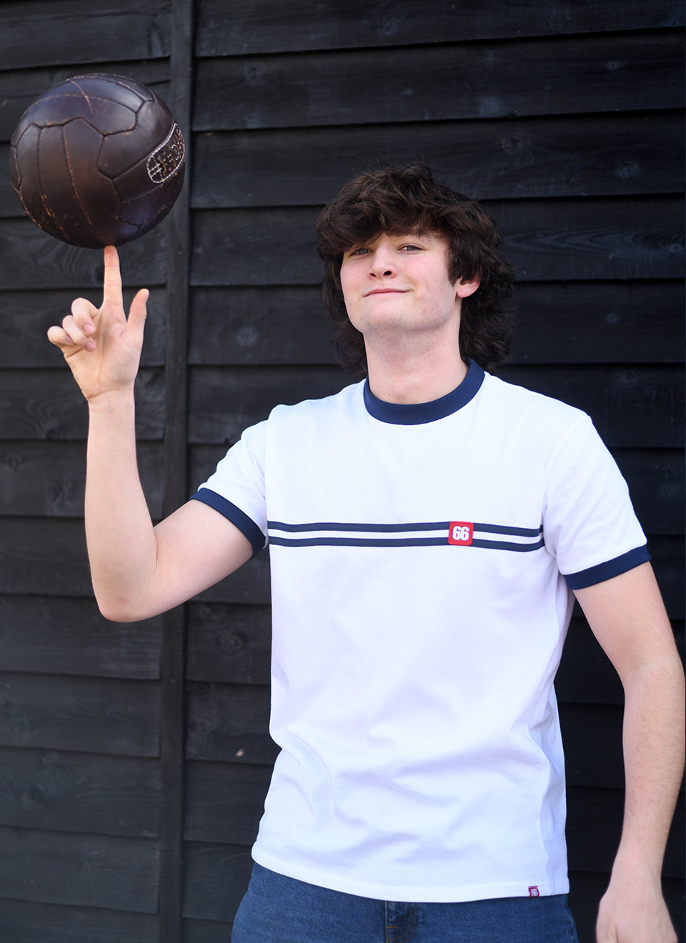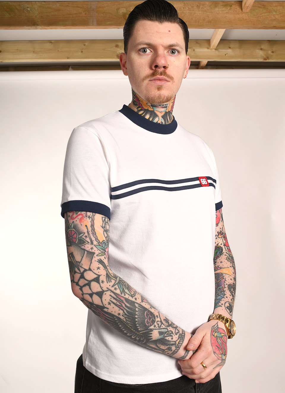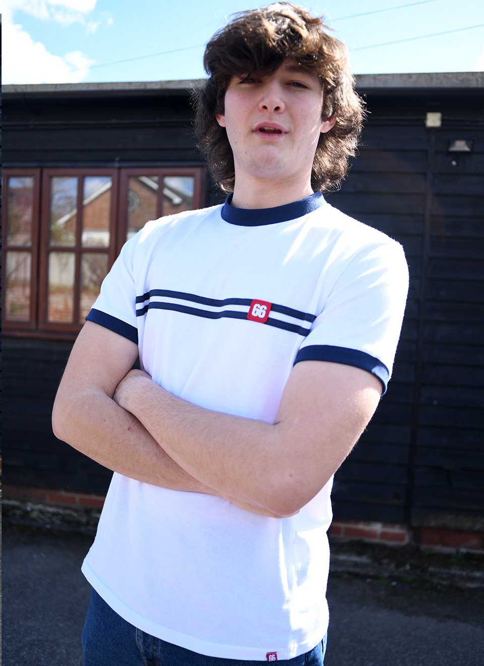 White and Blue Horizontal Stripe “Racer” T-Shirt By 66 Clothing Made In UK